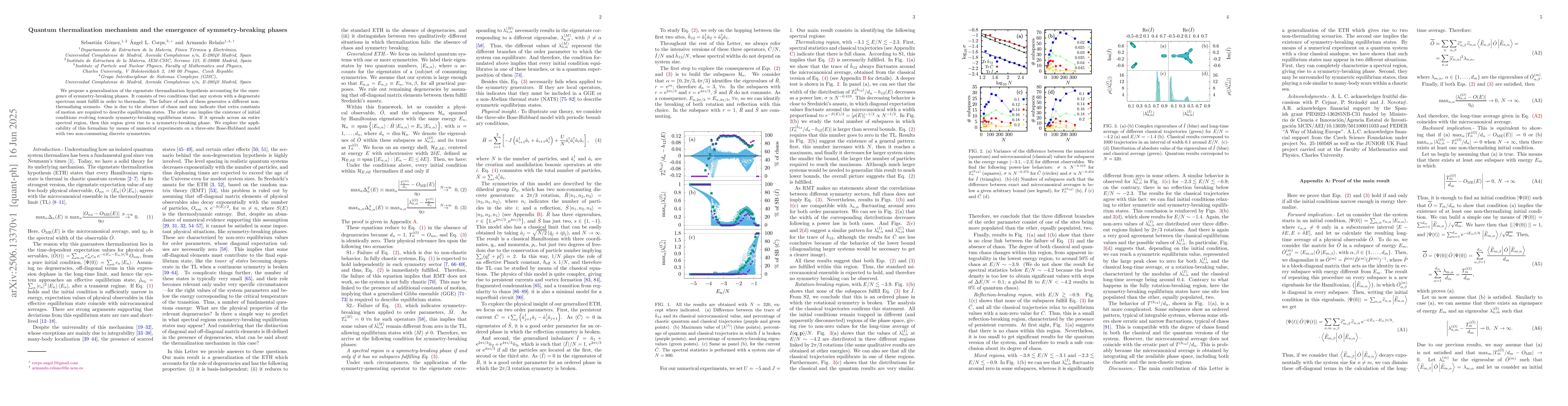 We propose a generalization of the eigenstate thermalization hypothesis accounting for the emergence of symmetry-breaking phases. It consists of two conditions that any system with a degenerate spectrum must fulfill in order to thermalize. The failure of each of them generates a different non-thermalizing scenario. One is due to the absence of chaos and may indicate that extra constants of motion are required to describe equilibrium states. The other one implies the existence of initial conditions evolving towards symmetry-breaking equilibrium states. If it spreads across an entire spectral region, then this region gives rise to a symmetry-breaking phase. We explore the applicability of this formalism by means of numerical experiments on a three-site Bose-Hubbard model with two non-commuting discrete symmetries.