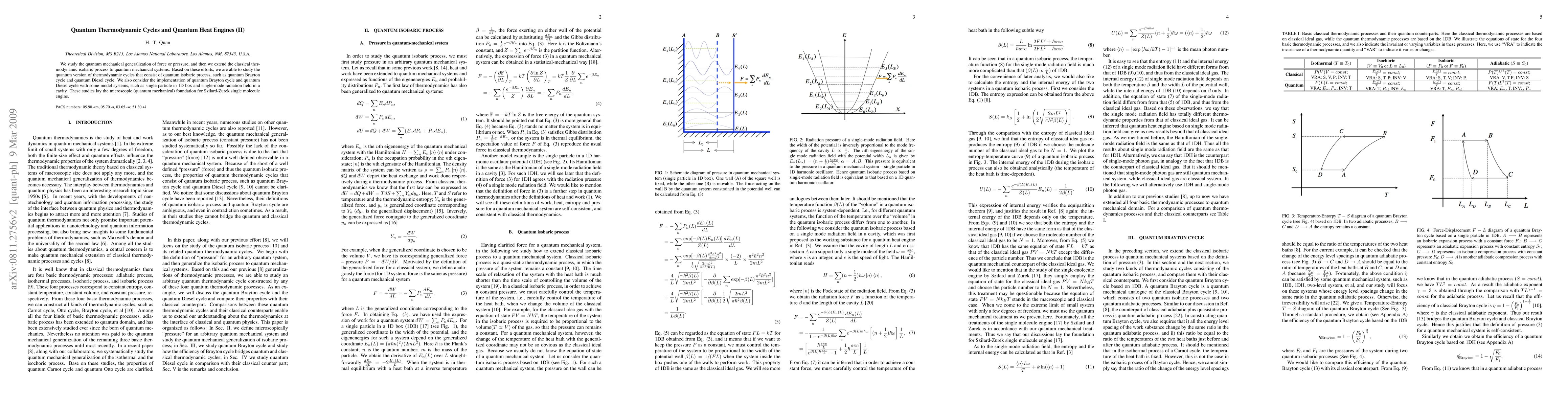 We study the quantum mechanical generalization of force or pressure, and then we extend the classical thermodynamic isobaric process to quantum mechanical systems. Based on these efforts, we are able to study the quantum version of thermodynamic cycles that consist of quantum isobaric process, such as quantum Brayton cycle and quantum Diesel cycle. We also consider the implementation of quantum Brayton cycle and quantum Diesel cycle with some model systems, such as single particle in 1D box and single-mode radiation field in a cavity. These studies lay the microscopic (quantum mechanical) foundation for Szilard-Zurek single molecule engine.