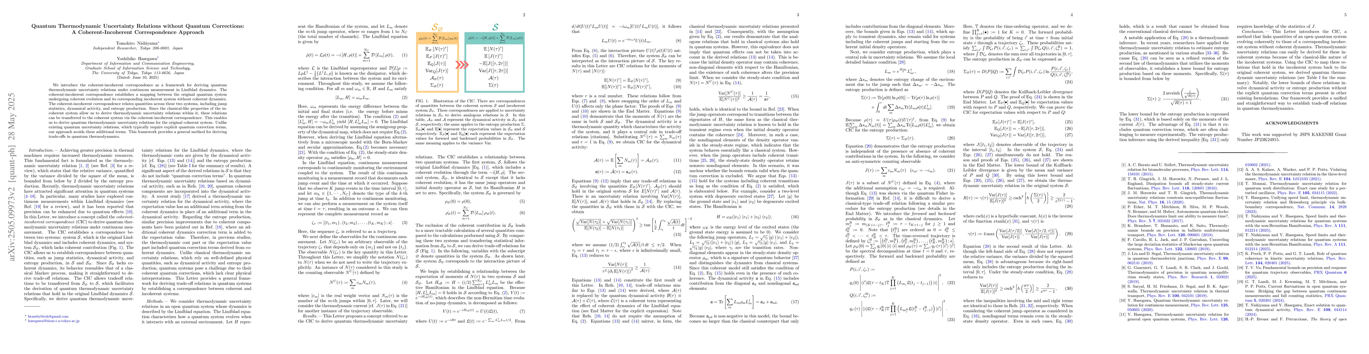 The coherent-incoherent correspondence approach enabling the derivation of quantum thermodynamic uncertainty relations without quantum correction terms.
