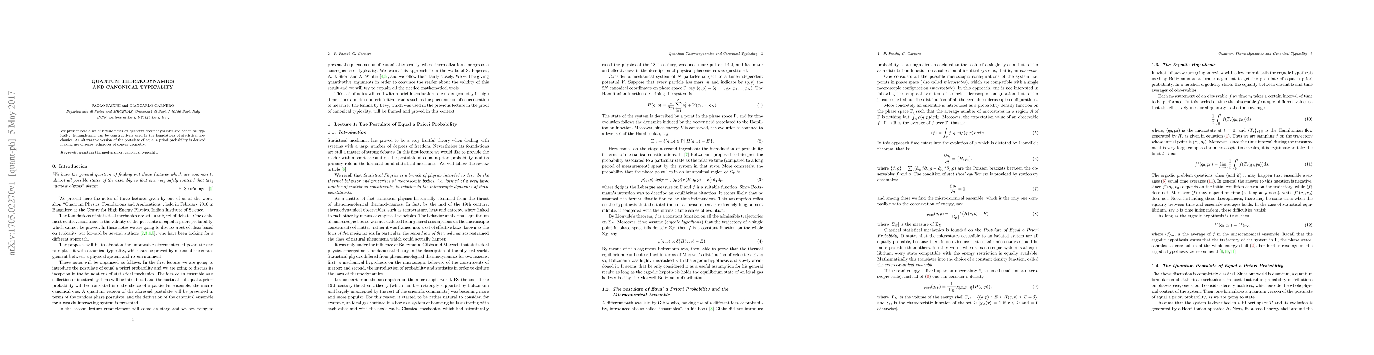We present here a set of lecture notes on quantum thermodynamics and canonical typicality. Entanglement can be constructively used in the foundations of statistical mechanics. An alternative version of the postulate of equal a priori probability is derived making use of some techniques of convex geometry