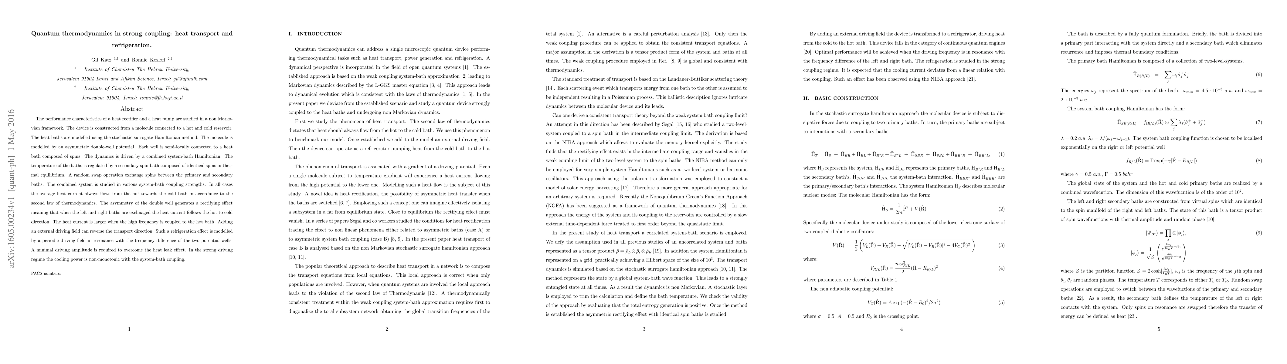 A study on quantum thermodynamics reveals that a heat rectifier and heat pump can transport heat from hot to cold baths with efficiency, while adding an external driving field can reverse the direction of heat flow for refrigeration purposes.