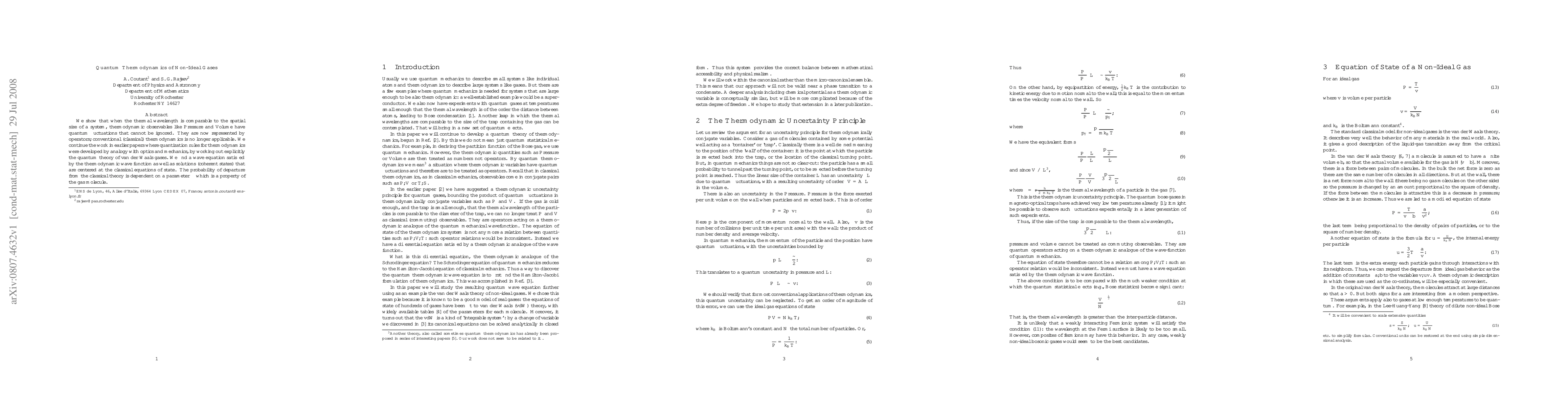 We show that when the thermal wavelength is comparable to the spatial size of a system, thermodynamic observables like Pressure and Volume have quantum fluctuations that cannot be ignored. They are now represented by operators; conventional (classical) thermodynamics is no longer applicable. We continue the work in earlier papers where quantization rules for thermodynamics were developed by analogy with optics and mechanics, by working out explicitly the quantum theory of van der Waals gases. We find a wave equation satisfied by the thermodynamic wave function as well as solutions ({\em coherent states}) that are centered at the classical equations of state. The probability of departure from the classical theory is dependent on a parameter $\sigma$ which is a property of the gas molecule.