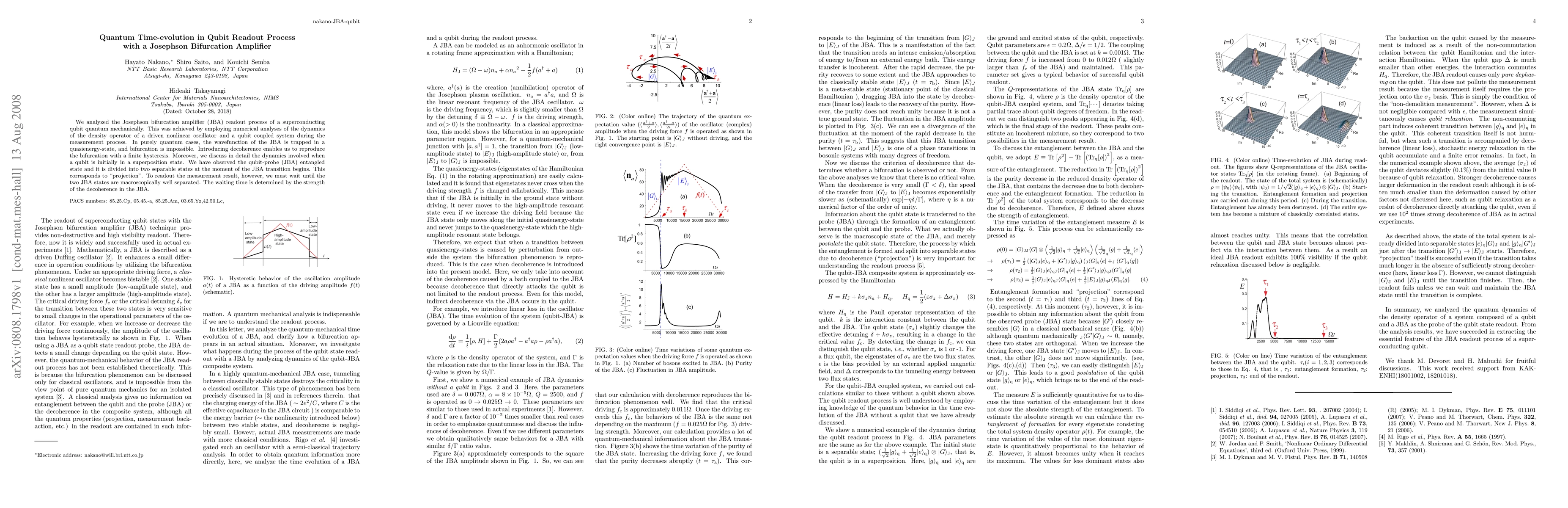 This research investigates the quantum time-evolution during the readout process of a superconducting qubit using a Josephson bifurcation amplifier (JBA), revealing that decoherence allows for bifurcation with hysteresis. The study finds that entangled states in the qubit-JBA system separate into distinct states upon JBA transition, with measurement results requiring time proportional to the decoherence strength.