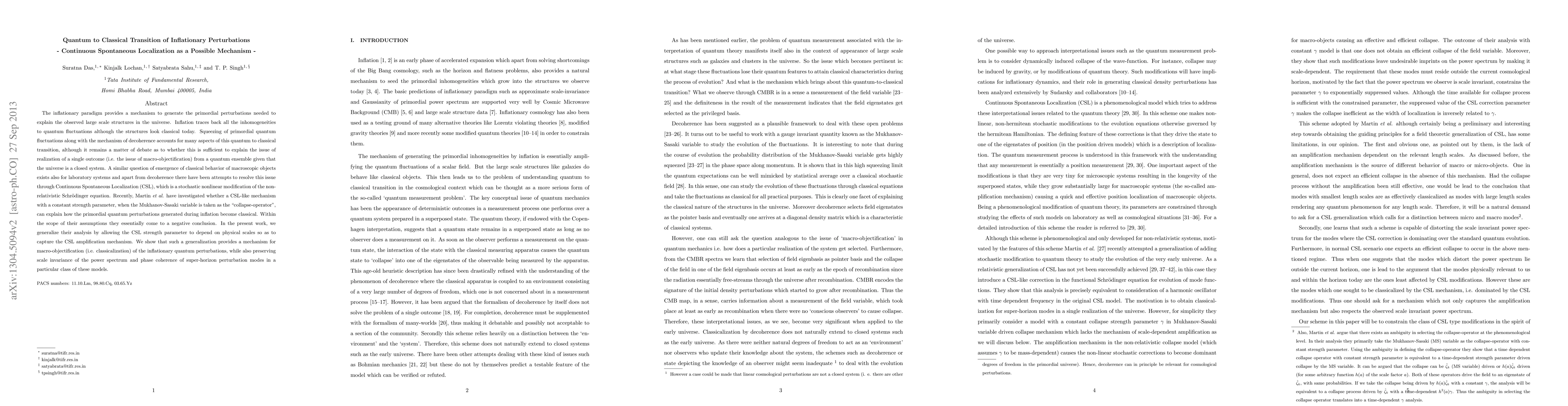 This paper investigates the quantum-to-classical transition of inflationary perturbations, exploring whether Continuous Spontaneous Localization (CSL) can explain the classicalization of primordial quantum fluctuations. The authors generalize previous analyses by allowing the CSL strength parameter to vary with scale, demonstrating that this adaptation can achieve macro-objectification without disrupting scale invariance and phase coherence.