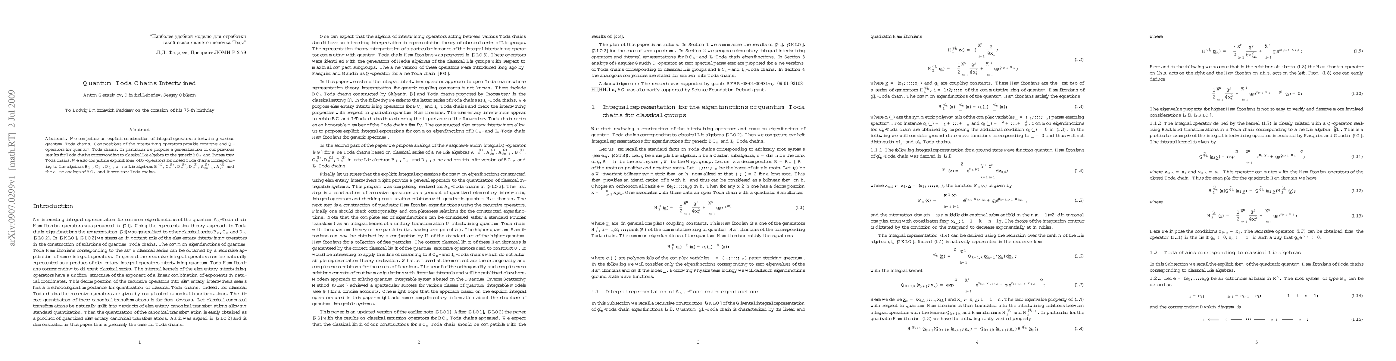 We conjecture an explicit construction of integral operators intertwining various quantum Toda chains. Compositions of the intertwining operators provide recursive and Q-operators for quantum Toda chains. In particular we propose a generalization of our previous results for Toda chains corresponding to classical Lie algebra to the generic BC_n and Inozemtsev Toda chains. We also conjecture explicit form of Q-operators for closed Toda chains corresponding to Lie algebras B_{\infty}, C_{\infty}, D_{\infty}, affine Lie algebras B^{(1)}_n, C^{(1)}_n, D^{(1)}_n, D^{(2)}_n, A^{(2)}_{2n-1}, A^{(2)}_{2n} and the affine analogs of BC_n and Inozemtsev Toda chains.