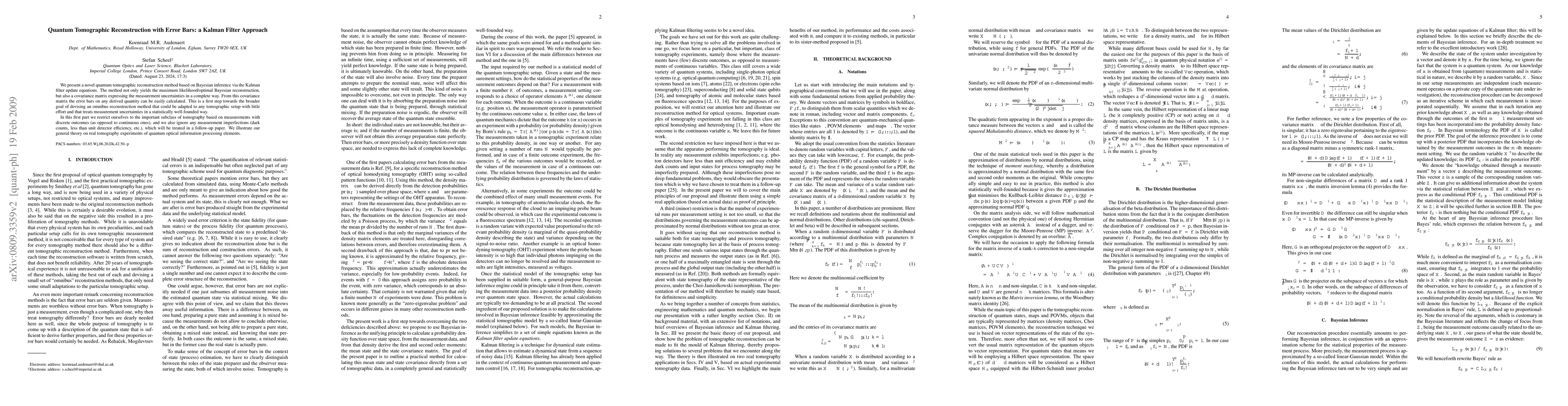 This paper introduces a Bayesian reconstruction method for quantum tomography using Kalman filter equations, providing both optimal reconstructions and a covariance matrix for measurement uncertainties. The method is demonstrated on quantum optical experiments, with future work planned to address measurement imperfections.
