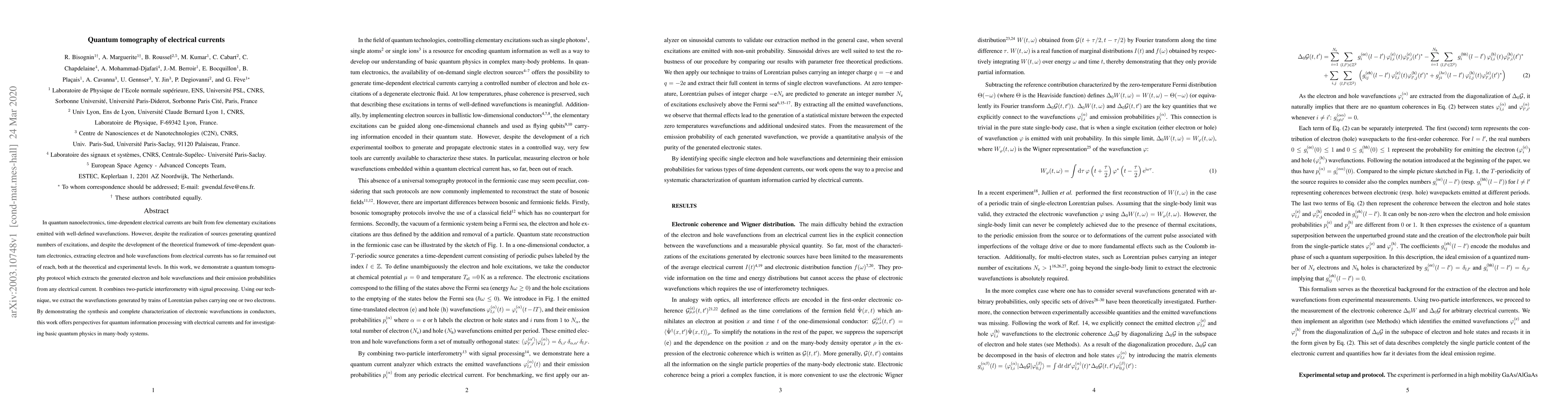 In quantum nanoelectronics, time-dependent electrical currents are built from few elementary excitations emitted with well-defined wavefunctions. However, despite the realization of sources generating quantized numbers of excitations, and despite the development of the theoretical framework of time-dependent quantum electronics, extracting electron and hole wavefunctions from electrical currents has so far remained out of reach, both at the theoretical and experimental levels. In this work, we demonstrate a quantum tomography protocol which extracts the generated electron and hole wavefunctions and their emission probabilities from any electrical current. It combines two-particle interferometry with signal processing. Using our technique, we extract the wavefunctions generated by trains of Lorentzian pulses carrying one or two electrons. By demonstrating the synthesis and complete characterization of electronic wavefunctions in conductors, this work offers perspectives for quantum information processing with electrical currents and for investigating basic quantum physics in many-body systems.