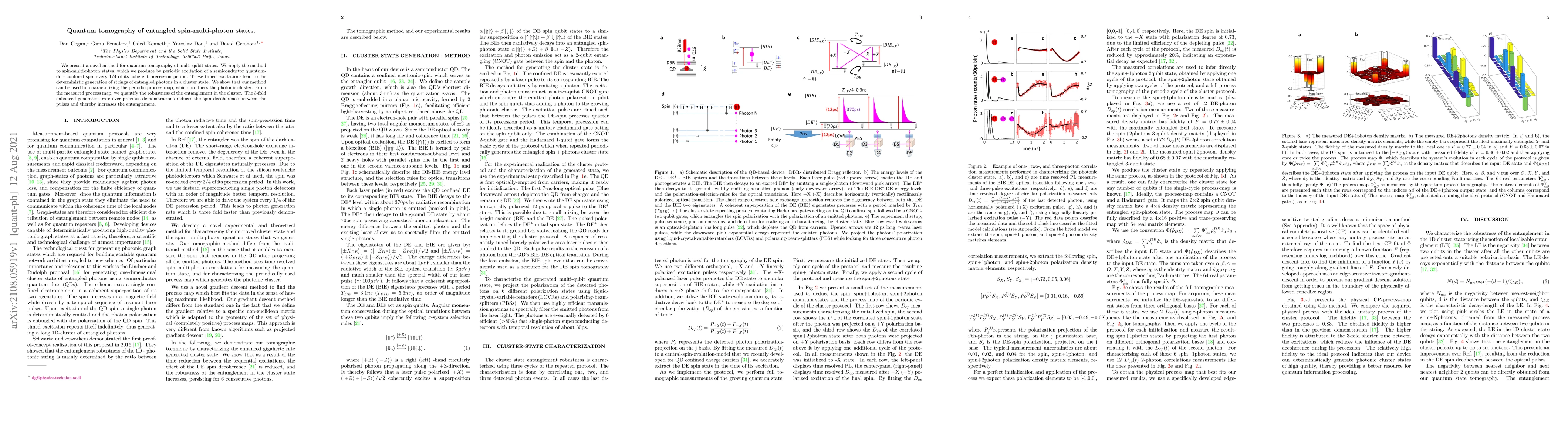 This paper introduces a new quantum tomography method for characterizing multi-qubit states, specifically applied to entangled spin-multi-photon states generated via periodic excitation of a semiconductor quantum dot. The method enhances entanglement robustness and generation rate by reducing spin decoherence.