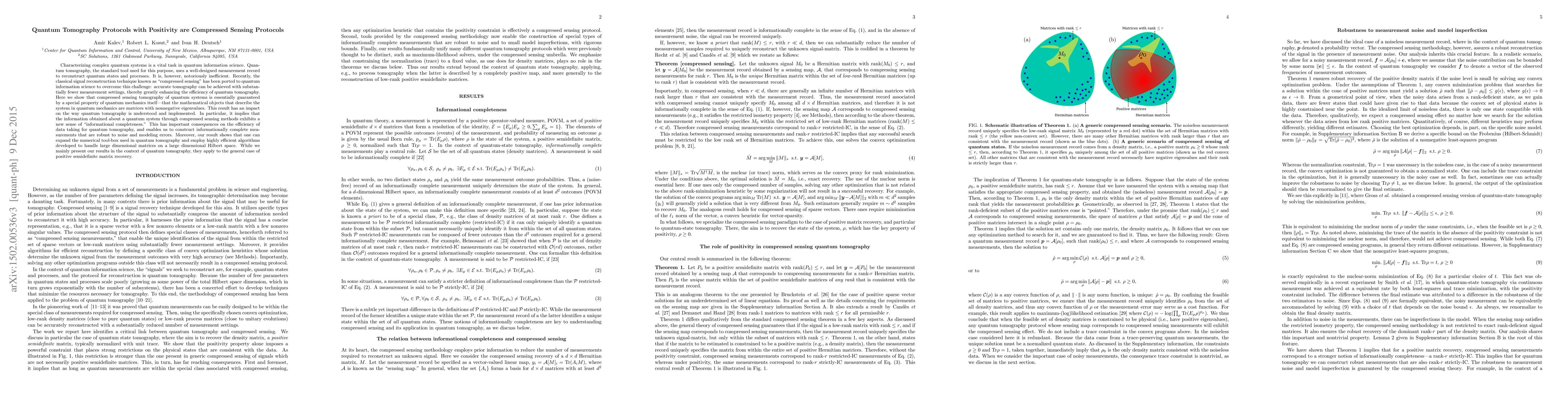 This paper demonstrates that quantum tomography protocols leveraging the positivity of quantum mechanical matrices can be effectively achieved through compressed sensing, significantly enhancing efficiency. This approach ensures "informational completeness" and robustness against noise and errors, while also expanding the toolbox for handling large dimensional matrices.