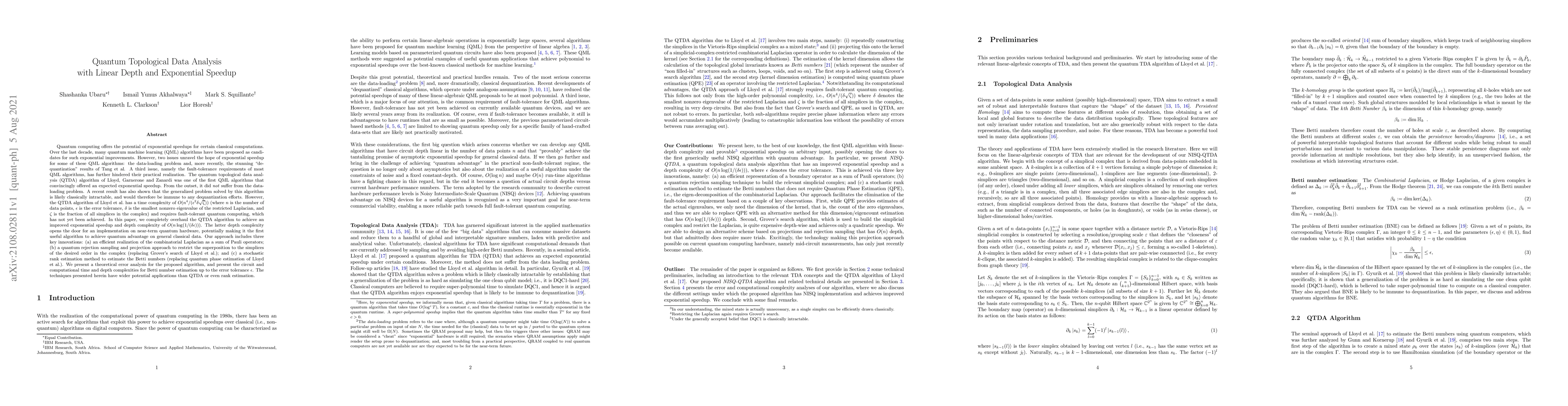 This paper proposes a revamped quantum topological data analysis (QTDA) algorithm that achieves an improved exponential speedup and linear depth complexity. The authors address the original algorithm's high time complexity and fault-tolerance requirements through three key innovations: efficient combinatorial Laplacian realization, quantum rejection sampling, and stochastic rank estimation for Betti numbers.