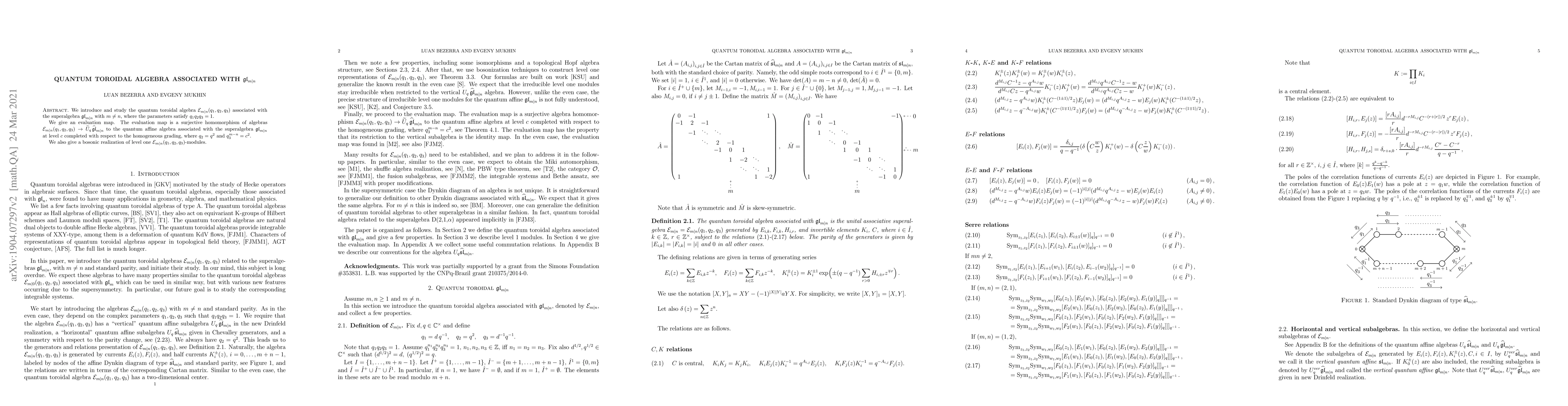 We introduce and study the quantum toroidal algebra $\mathcal{E}_{m|n}(q_1,q_2,q_3)$ associated with the superalgebra $\mathfrak{gl}_{m|n}$ with $m\neq n$, where the parameters satisfy $q_1q_2q_3=1$. We give an evaluation map. The evaluation map is a surjective homomorphism of algebras $\mathcal{E}_{m|n}(q_1,q_2,q_3) \to \widetilde{U}_q\,\widehat{\mathfrak{gl}}_{m|n}$ to the quantum affine algebra associated with the superalgebra $\mathfrak{gl}_{m|n}$ at level $c$ completed with respect to the homogeneous grading, where $q_2=q^2$ and $q_3^{m-n}=c^2$. We also give a bosonic realization of level one $\mathcal{E}_{m|n}(q_1,q_2,q_3)$-modules.