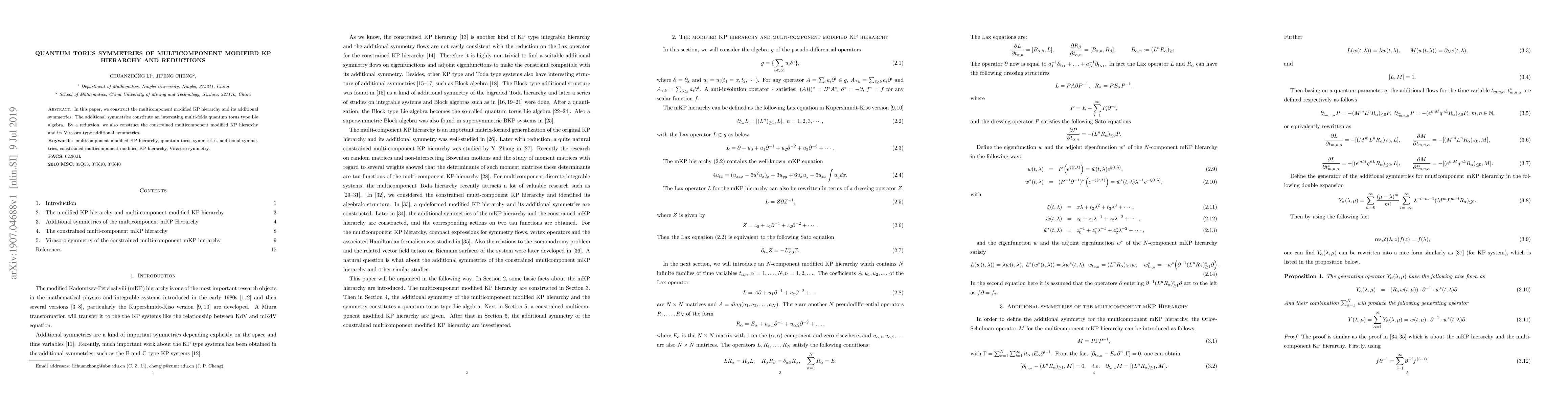 This paper constructs the multicomponent modified KP hierarchy and identifies its additional symmetries, which form a multi-folds quantum torus type Lie algebra. The study also reduces this hierarchy to obtain a constrained version with Virasoro type additional symmetries.