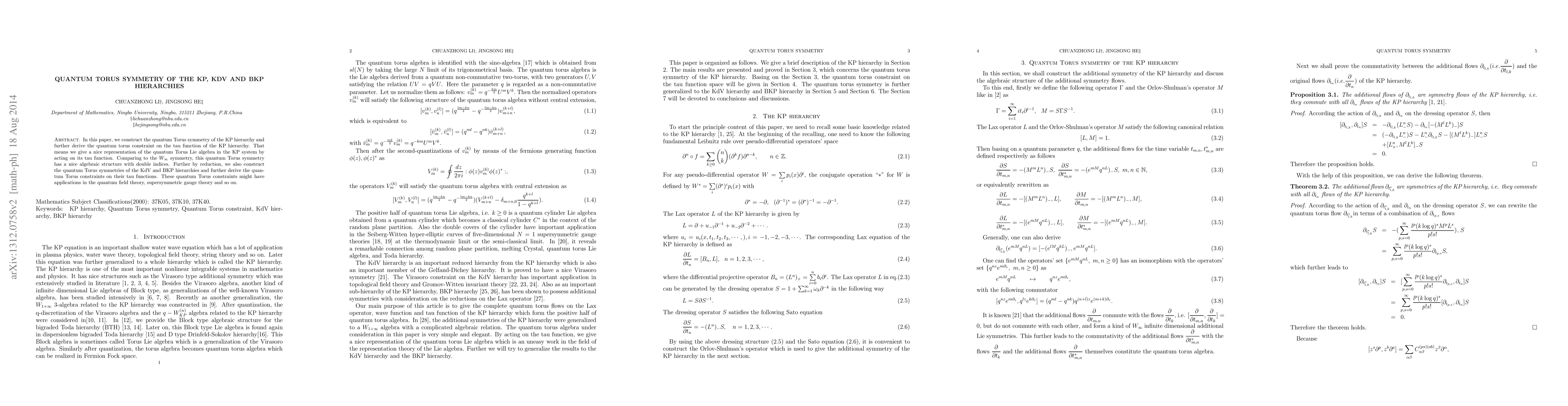 This paper constructs the quantum Torus symmetry for the KP hierarchy and derives quantum Torus constraints on its tau function, showcasing a distinct algebraic structure with double indices. The study also extends these symmetries to the KdV and BKP hierarchies, suggesting potential applications in quantum field theory and supersymmetric gauge theory.