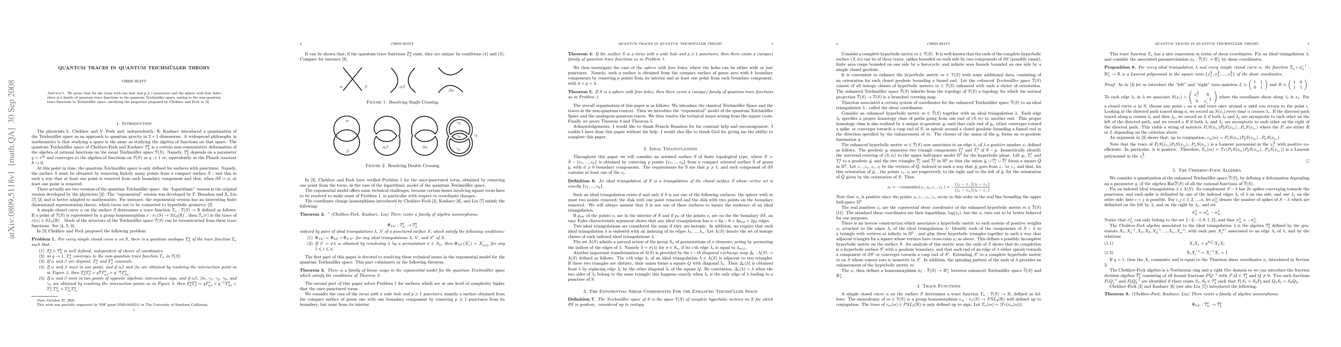 This paper establishes the existence of quantum trace functions in quantum Teichmüller space for specific tori and spheres with multiple holes, analogous to non-quantum trace functions in classical Teichmüller space, as proposed by Chekhov and Fock. These findings extend the understanding of quantum observables in geometric contexts.