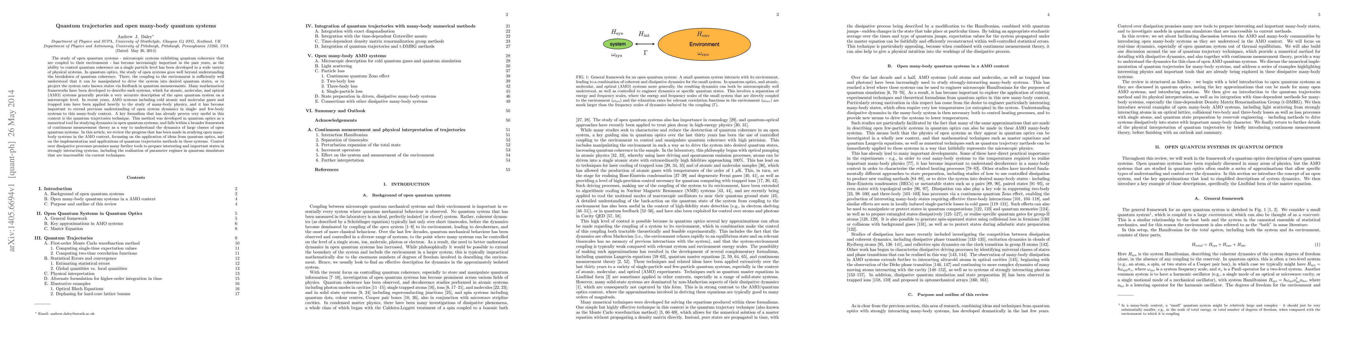 This paper reviews advancements in understanding open many-body quantum systems, particularly through the application of quantum trajectories techniques. It highlights the extension of these methods from single- and few-body systems to atomic, molecular, and optical systems, emphasizing their potential for controlling quantum coherence and preparing unique quantum states.