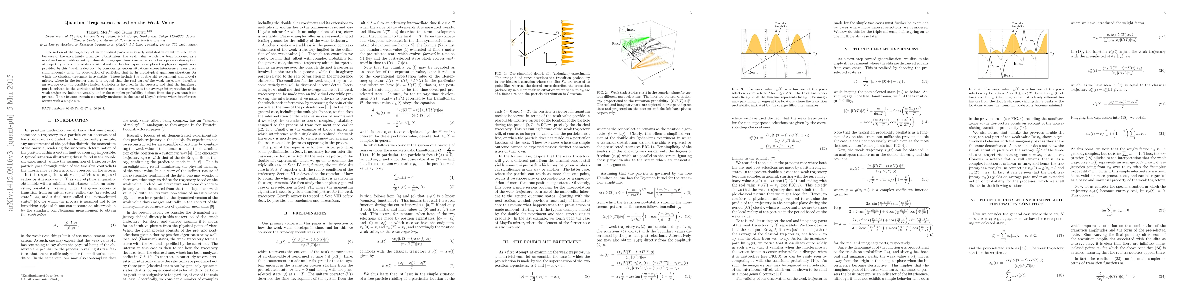 The notion of trajectory of an individual particle is strictly inhibited in quantum mechanics because of the uncertainty principle. Nonetheless, the weak value, which has been proposed as a novel and measurable quantity definable to any quantum observable, can offer a possible description of trajectory on account of its statistical nature of the value. In this paper, we explore the physical significance provided by this weak trajectory by considering various situations where interference takes place simultaneously with the observation of particles, that is, in prototypical quantum situations for which no classical treatment is available. These include the double slit experiment and Lloyd's mirror, where in the former case it is argued that the real part of the weak trajectory describes an average over the possible classical trajectories involved in the process, and that the imaginary part is related to the variation of interference. It is shown that this average interpretation of the weak trajectory holds universally under the complex probability defined from the given transition process. These features remain essentially unaltered in the case of Lloyd's mirror where interference occurs with a single slit.