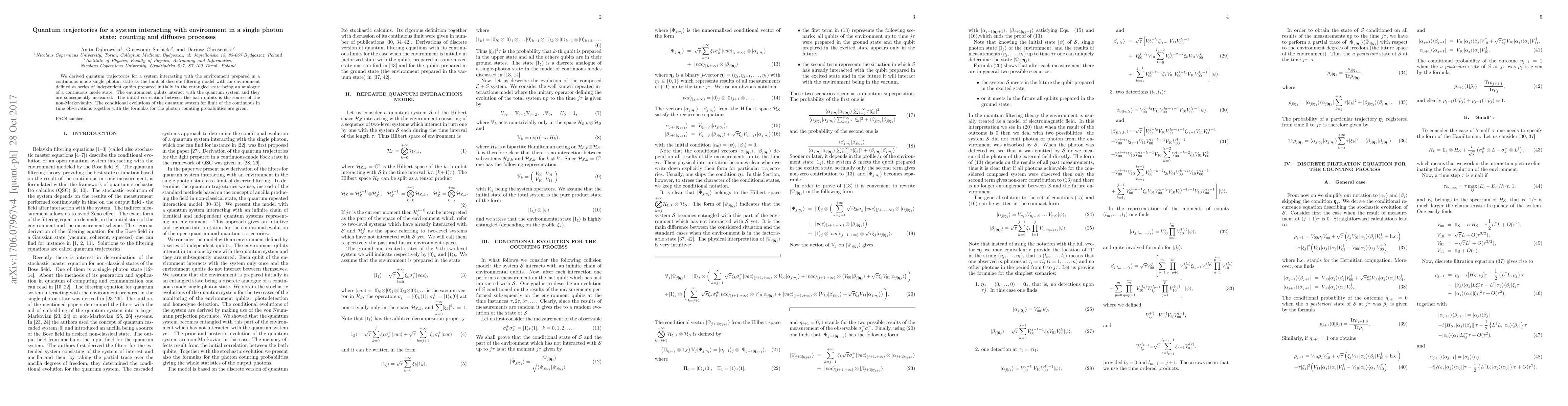 Researchers developed quantum trajectories for a system interacting with its environment in a single photon state, accounting for non-Markovianity due to initial entangled correlations between environment qubits.