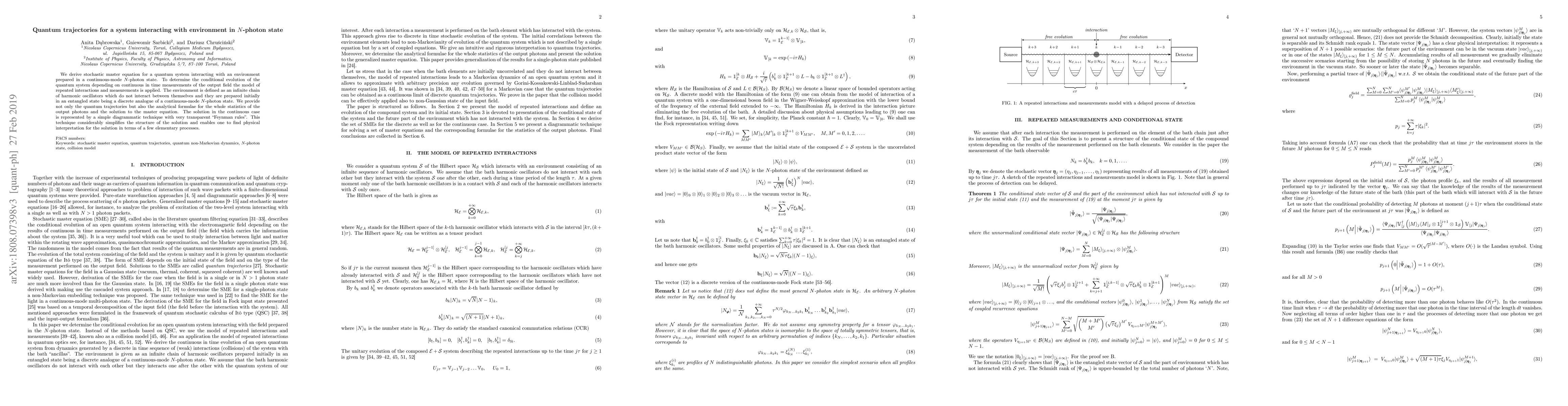 Researchers derived a stochastic master equation for a quantum system interacting with an N-photon environment, enabling analysis of the system's conditional evolution through repeated interactions and measurements.