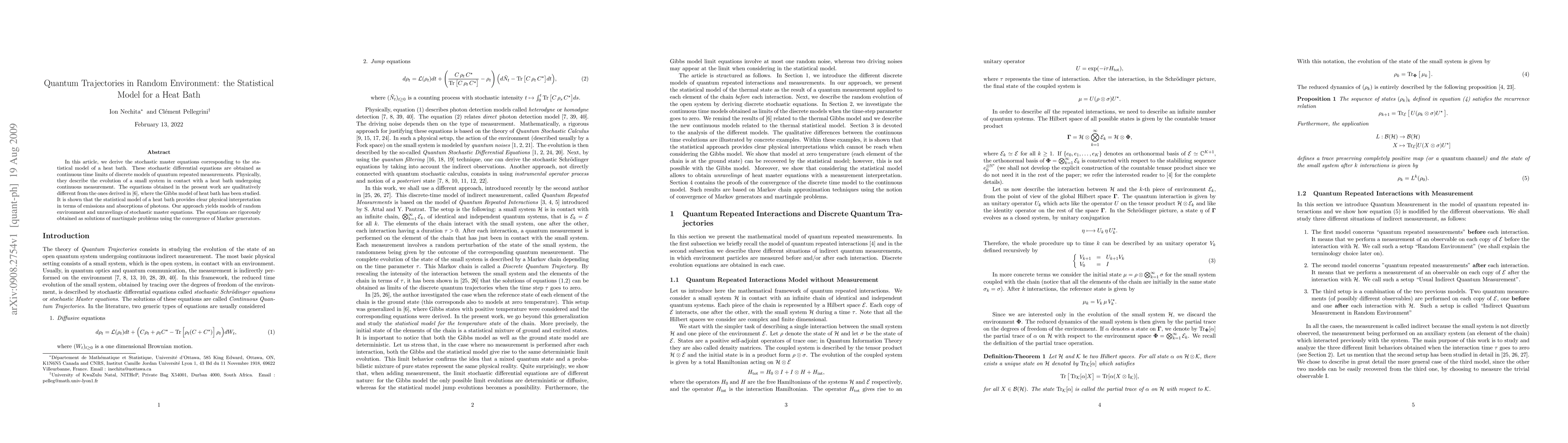 This paper derives stochastic master equations for a heat bath using quantum repeated measurements, offering a new approach to modeling random environments. The equations provide clear physical interpretation of photon emissions and absorptions.