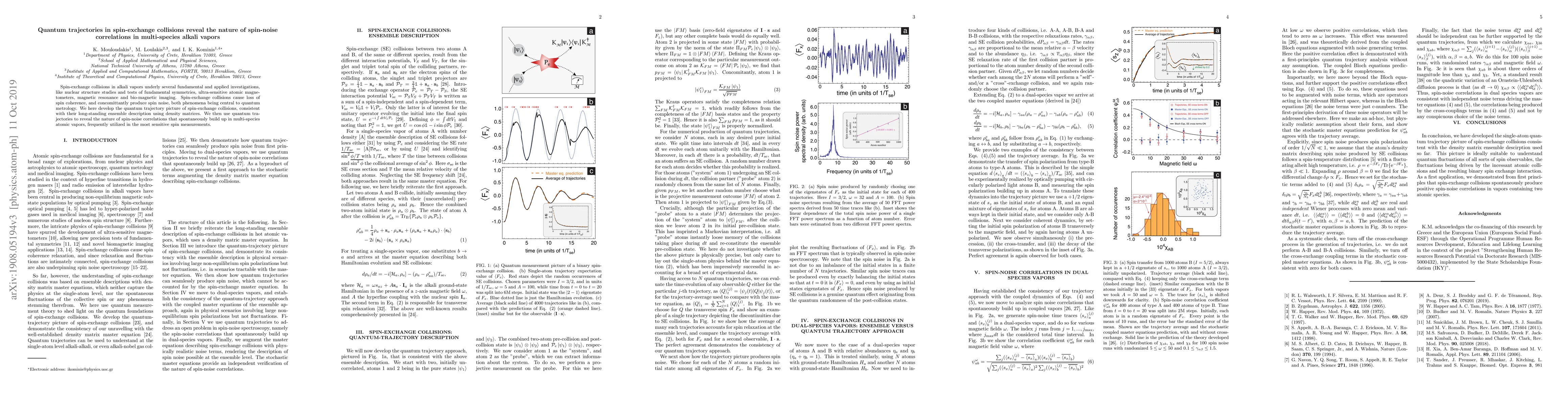 Spin-exchange collisions in alkali vapors have been at the basis of several fundamental and applied investigations, like nuclear structure studies and tests of fundamental symmetries, ultra-sensitive atomic magnetometers, magnetic resonance and bio-magnetic imaging. Spin-exchange collisions cause loss of spin coherence, and concomittantly produce spin noise, both phenomena being central to quantum metrology. We here develop the quantum trajectory picture of spin-exchange collisions, consistent with their long-standing ensemble description using density matrices. We then use quantum trajectories to reveal the nature of spin-noise correlations that spontaneously build up in multi-species atomic vapors, frequently utilized in the most sensitive spin measurements.