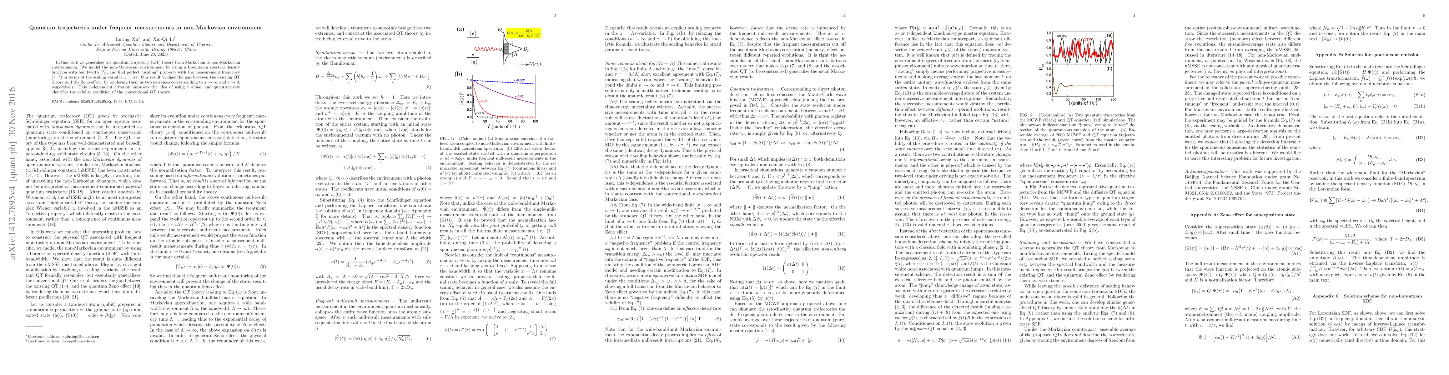 This research paper generalizes the quantum trajectory theory to non-Markovian environments, introducing a scaling criterion that bridges the gap between the Zeno effect and conventional QT theory.