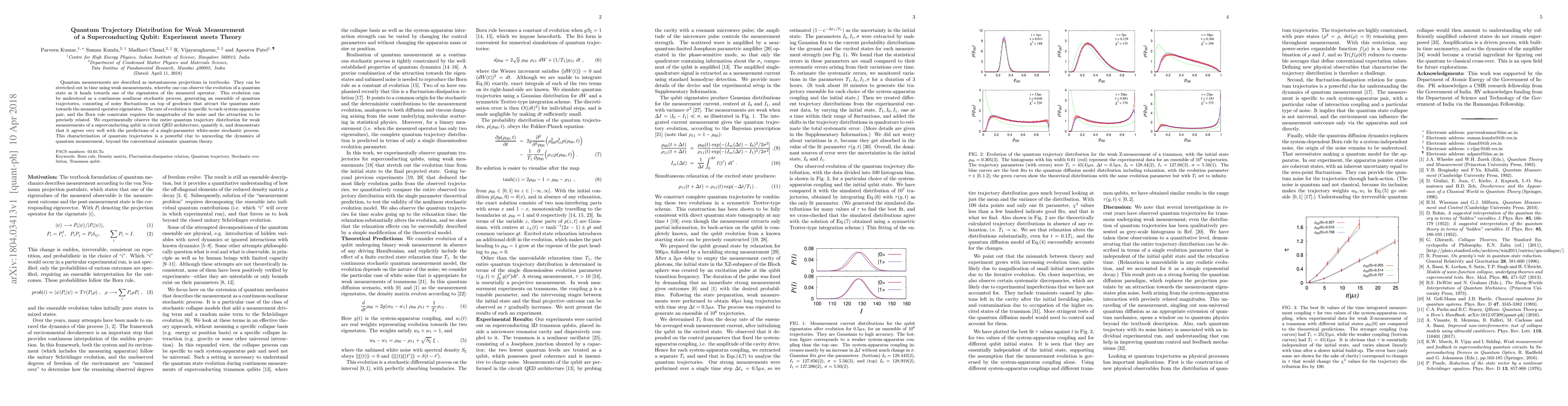 This paper experimentally observes and quantifies the quantum trajectory distribution for weak measurements of a superconducting qubit, demonstrating strong agreement with theoretical predictions of a single-parameter white-noise stochastic process, thus providing deeper insight into the dynamics of quantum measurement.