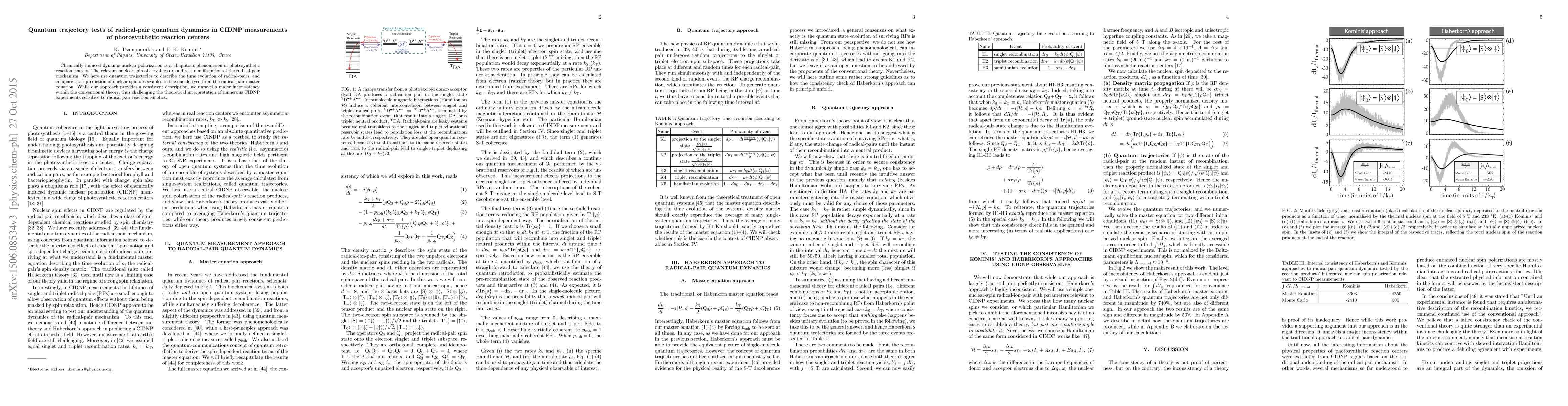 This paper employs quantum trajectory methods to model the time evolution of radical pairs in photosynthetic reaction centers, comparing these predictions to those from the radical-pair master equation. It reveals a significant inconsistency in conventional theory, challenging the interpretation of many chemically induced dynamic nuclear polarization experiments.