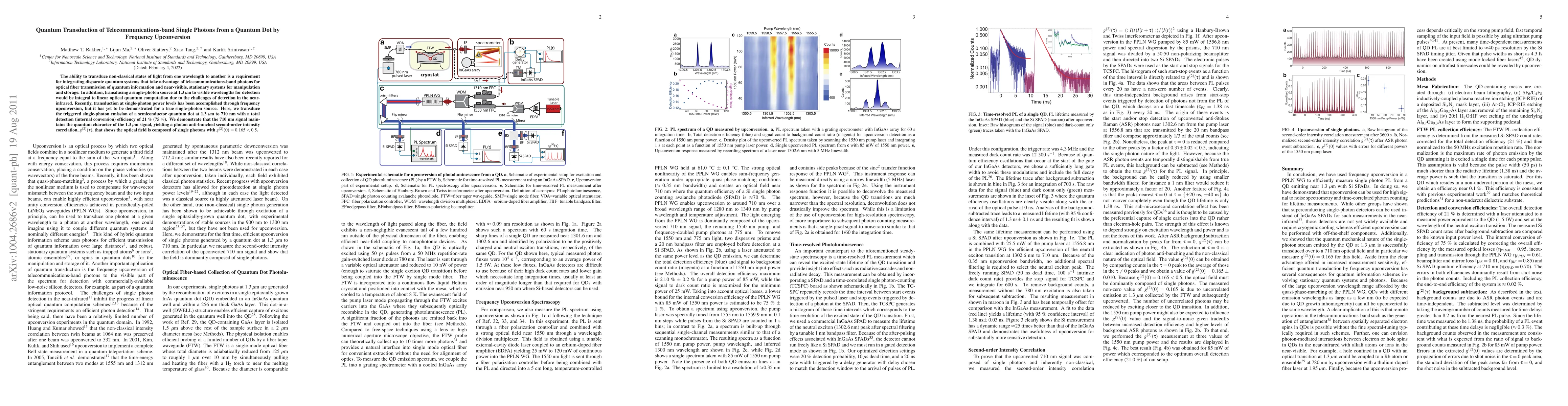 This paper demonstrates the transduction of triggered single-photon emissions from a semiconductor quantum dot at 1.3 μm to visible wavelengths (710 nm) via frequency upconversion, achieving a 21% total detection efficiency and preserving the quantum nature of the original photons.