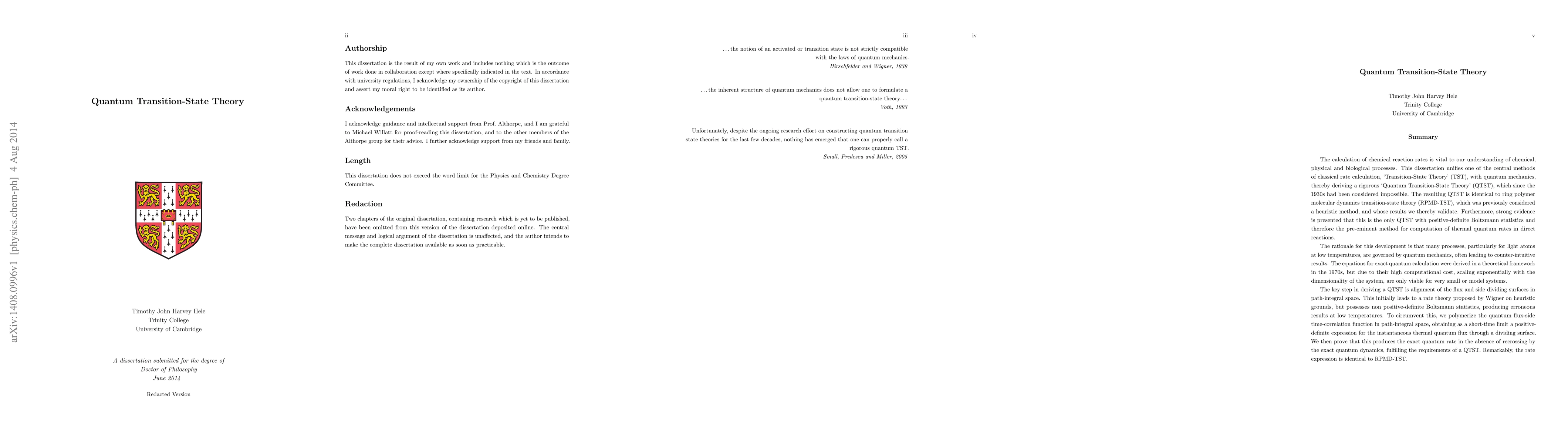 This dissertation unifies one of the central methods of classical rate calculation, `Transition-State Theory' (TST), with quantum mechanics, thereby deriving a rigorous `Quantum Transition-State Theory' (QTST). The resulting QTST is identical to ring polymer molecular dynamics transition-state theory (RPMD-TST), which was previously considered a heuristic method, and whose results we thereby validate. The key step in deriving a QTST is alignment of the flux and side dividing surfaces in path-integral space to obtain a quantum flux-side time-correlation function with a non-zero $t\to 0_+$ limit. We then prove that this produces the exact quantum rate in the absence of recrossing by the exact quantum dynamics, fulfilling the requirements of a QTST. Furthermore, strong evidence is presented that this is the only QTST with positive-definite Boltzmann statistics and therefore the pre-eminent method for computation of thermal quantum rates in direct reactions.