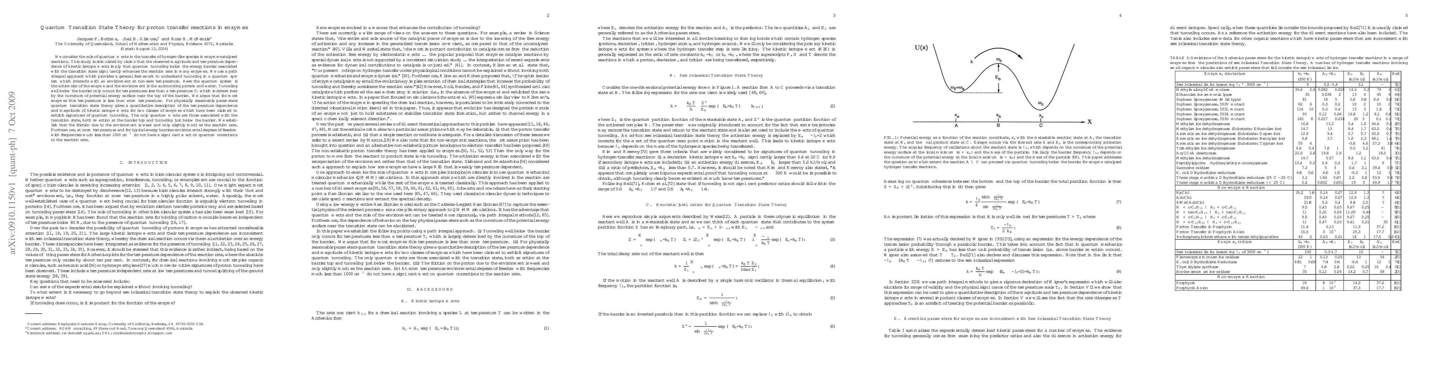 We consider the role of quantum effects in the transfer of hyrogen-like species in enzyme-catalysed reactions. This study is stimulated by claims that the observed magnitude and temperature dependence of kinetic isotope effects imply that quantum tunneling below the energy barrier associated with the transition state significantly enhances the reaction rate in many enzymes. We use a path integral approach which provides a general framework to understand tunneling in a quantum system which interacts with an environment at non-zero temperature. Here the quantum system is the active site of the enzyme and the environment is the surrounding protein and water. Tunneling well below the barrier only occurs for temperatures less than a temperature $T_0$ which is determined by the curvature of potential energy surface near the top of the barrier. We argue that for most enzymes this temperature is less than room temperature. For physically reasonable parameters quantum transition state theory gives a quantitative description of the temperature dependence and magnitude of kinetic isotope effects for two classes of enzymes which have been claimed to exhibit signatures of quantum tunneling. The only quantum effects are those associated with the transition state, both reflection at the barrier top and tunneling just below the barrier. We establish that the friction due to the environment is weak and only slightly modifies the reaction rate. Furthermore, at room temperature and for typical energy barriers environmental degrees of freedom with frequencies much less than 1000 cm$^{-1}$ do not have a significant effect on quantum corrections to the reaction rate.