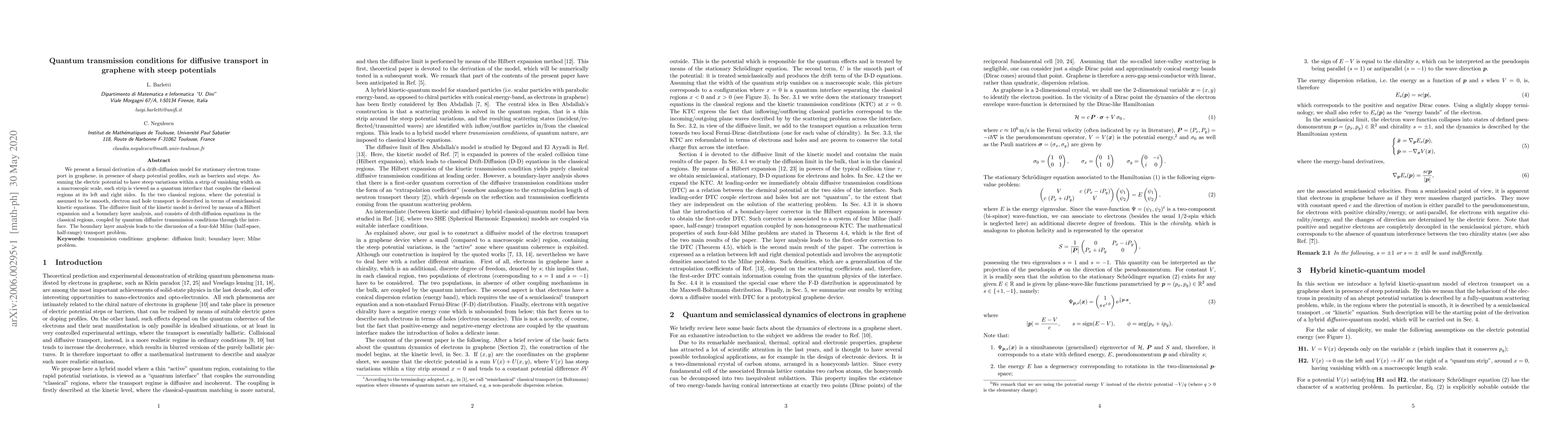 Researchers developed a new model for electron transport in graphene with steep potentials, including quantum transmission conditions for diffusive transport, which can help understand complex electronic properties of graphene.