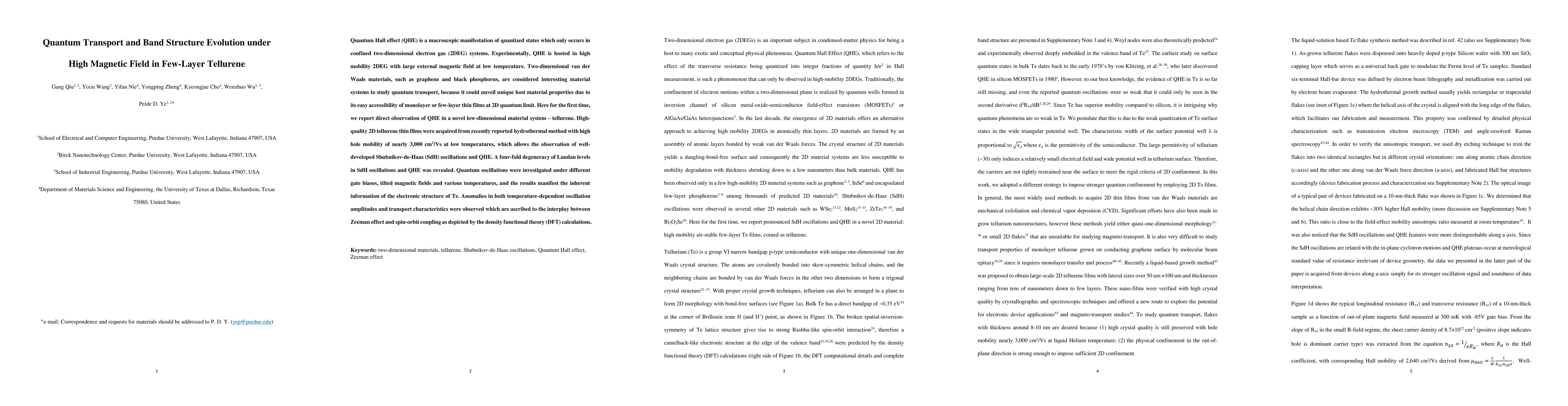 Researchers have observed the quantum Hall effect in tellurene, a novel low-dimensional material system, revealing its electronic structure and anomalies due to Zeeman effect and spin-orbit coupling.