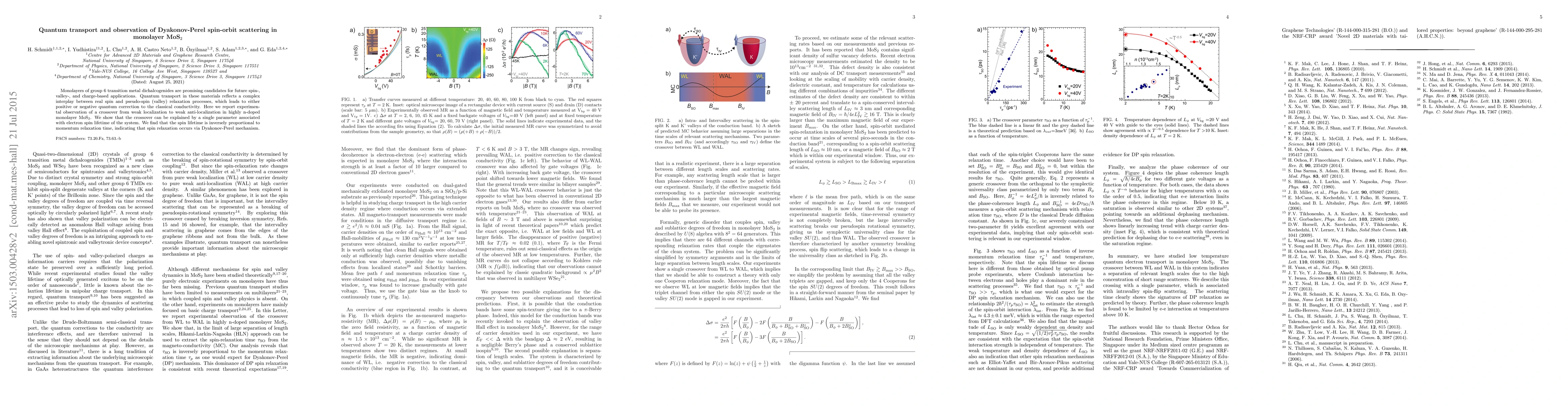 This paper reports experimental observation of a crossover from weak localization to weak anti-localization in n-doped monolayer MoS$_2$, attributing the phenomenon to Dyakonov-Perel spin-orbit scattering. The study finds that the spin lifetime inversely correlates with momentum relaxation time, confirming spin relaxation via the Dyakonov-Perel mechanism.