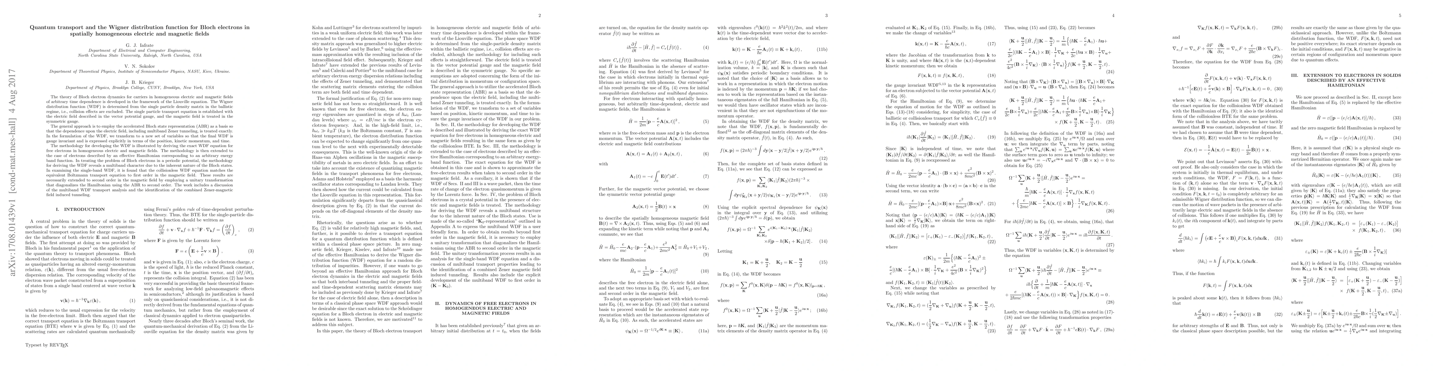 The theory of Bloch electron dynamics for carriers in homogeneous electric and magnetic fields of arbitrary time dependence is developed in the framework of the Liouville equation. The Wigner distribution function (WDF) is determined from the single particle density matrix in the ballistic regime, i.e., collision effects are excluded. The single particle transport equation is established with the electric field described in the vector potential gauge, and the magnetic field is treated in the symmetric gauge. The general approach is to employ the accelerated Bloch state representation (ABR) as a basis so that the dependence upon the electric field, including multiband Zener tunneling, is treated exactly. In the formulation of the WDF, we transform to a new set of variables so that the final WDF is gauge invariant and is expressed explicitly in terms of the position, kinetic momentum, and time. The methodology for developing the WDF is illustrated by deriving the exact WDF equation for free electrons in homogeneous electric and magnetic fields. The methodology is then extended to the case of electrons described by an effective Hamiltonian corresponding to an arbitrary energy band function. In treating the problem of Bloch electrons in a periodic potential, the methodology for deriving the WDF reveals a multiband character due to the inherent nature of the Bloch states. In examining the single-band WDF, it is found that the collisionless WDF equation matches the equivalent Boltzmann transport equation to first order in the magnetic field. These results are necessarily extended to second order in the magnetic field by employing a unitary transformation that diagonalizes the Hamiltonian using the ABR to second order. The work includes a discussion of the multiband WDF transport analysis and the identification of the combined Zener-magnetic field induced tunneling.