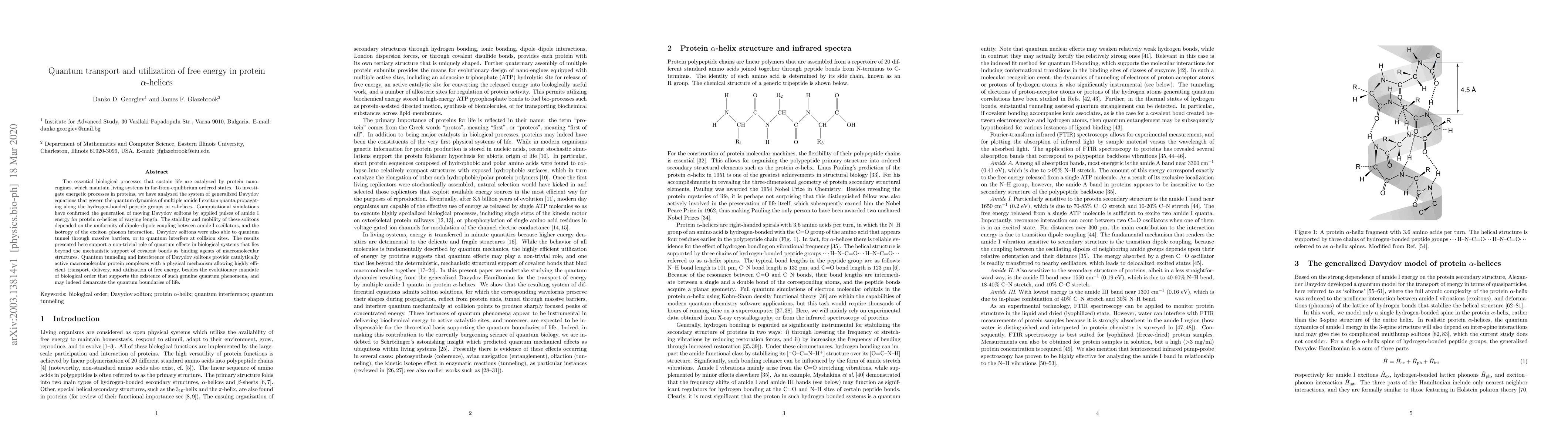 This paper investigates quantum dynamics in protein $\alpha$-helices using generalized Davydov equations, revealing the generation and stability of Davydov solitons. These solitons enable efficient quantum transport and utilization of free energy, suggesting a significant quantum role in biological processes beyond structural support.