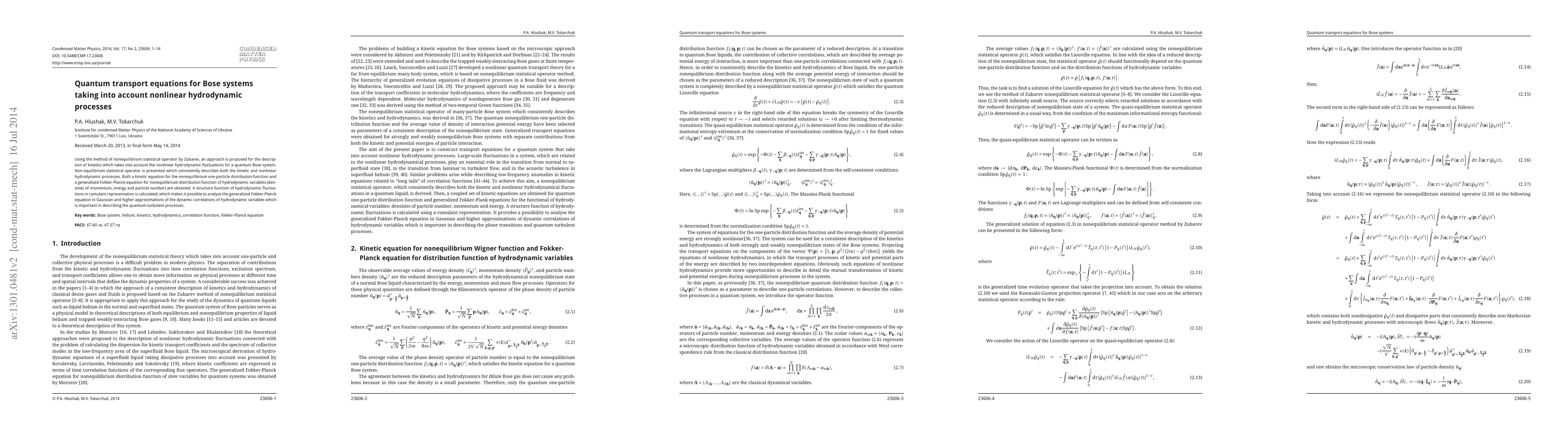 Researchers propose a new method to describe kinetic processes in quantum Bose systems, taking into account nonlinear hydrodynamic fluctuations, and derive equations for the distribution function of particles and hydrodynamic variables.