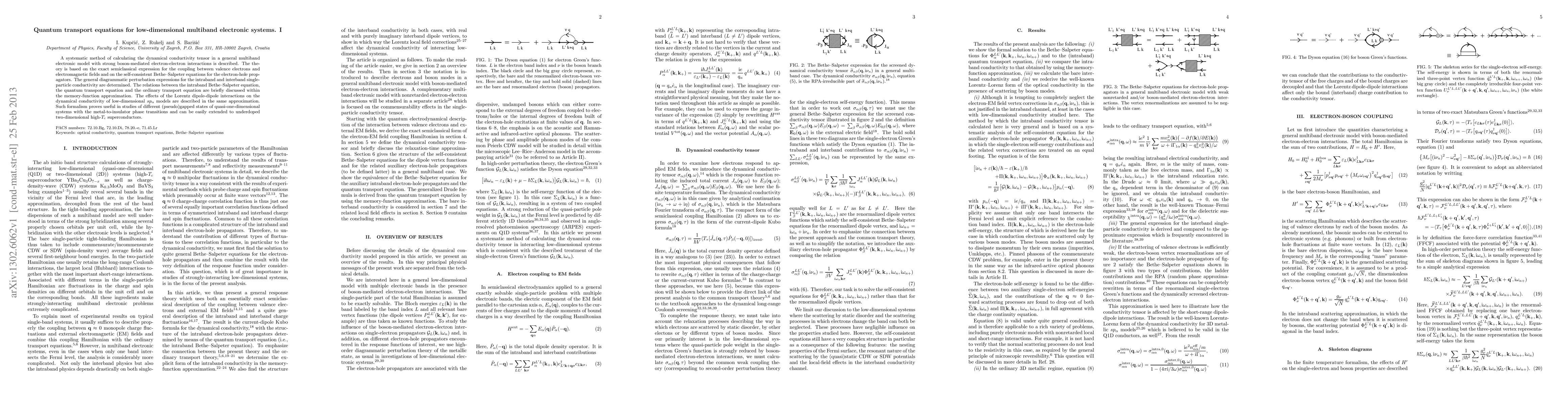 A systematic method of calculating the dynamical conductivity tensor in a general multiband electronic model with strong boson-mediated electron-electron interactions is described. The theory is based on the exact semiclassical expression for the coupling between valence electrons and electromagnetic fields and on the self-consistent Bethe--Salpeter equations for the electron-hole propagators. The general diagrammatic perturbation expressions for the intraband and interband single-particle conductivity are determined. The relations between the intraband Bethe--Salpeter equation, the quantum transport equation and the ordinary transport equation are briefly discussed within the memory-function approximation. The effects of the Lorentz dipole-dipole interactions on the dynamical conductivity of low-dimensional $sp_\alpha$ models are described in the same approximation. Such formalism proves useful in studies of different (pseudo)gapped states of quasi-one-dimensional systems with the metal-to-insulator phase transitions and can be easily extended to underdoped two-dimensional high-$T_c$ superconductors.