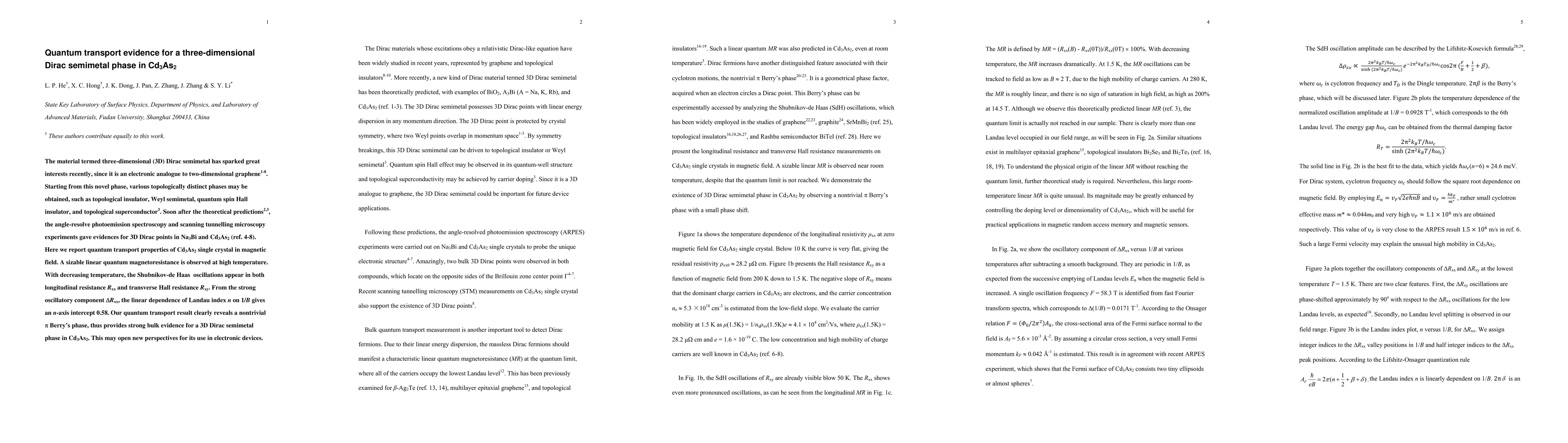 This paper reports quantum transport properties in Cd3As2 single crystals, revealing a sizable linear quantum magnetoresistance and Shubnikov-de Haas oscillations indicative of a nontrivial π Berry's phase, confirming Cd3As2 as a three-dimensional Dirac semimetal phase. These findings suggest potential applications for Cd3As2 in advanced electronic devices.