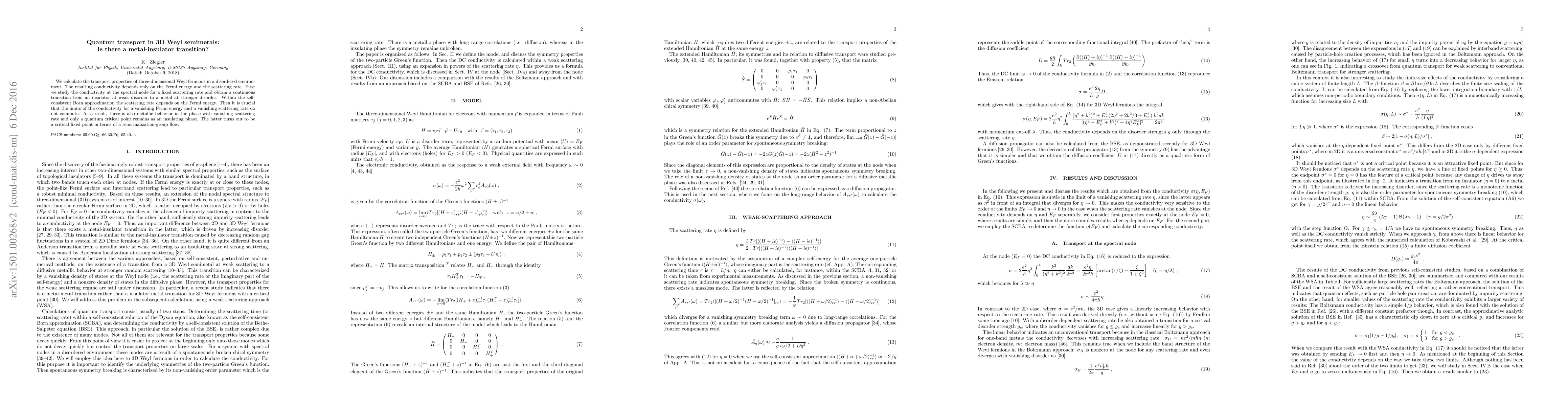 This paper investigates the quantum transport properties of 3D Weyl semimetals in a disordered environment, revealing a continuous metal-insulator transition with increasing disorder. It finds that metallic behavior persists even at zero scattering rate, leaving only a quantum critical point as an insulating state.
