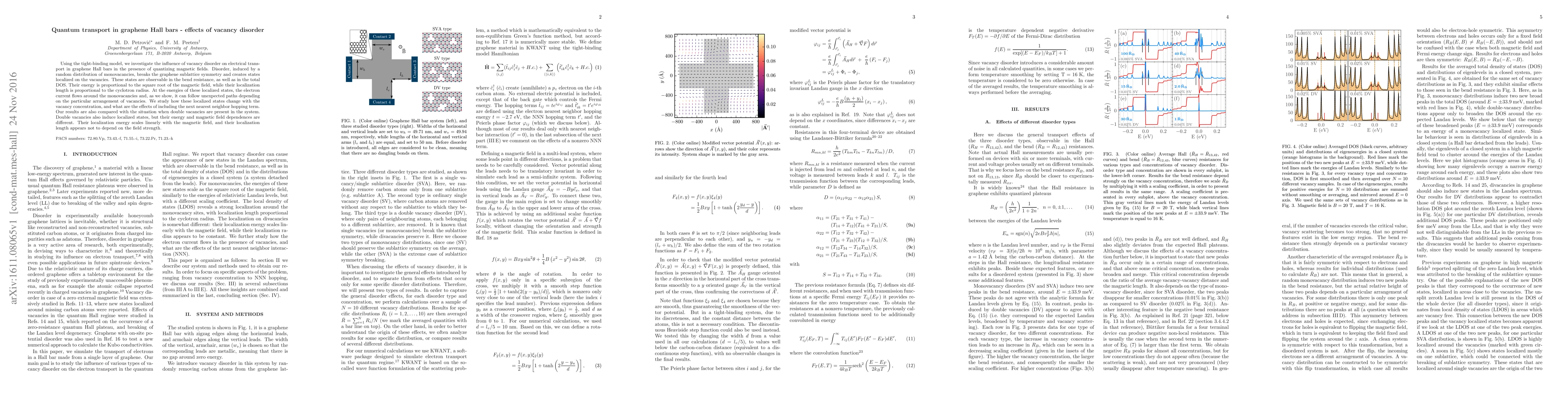 Researchers investigated how vacancy disorder in graphene Hall bars affects electron transport under quantizing magnetic fields, finding that localized states can create unexpected paths for current flow.