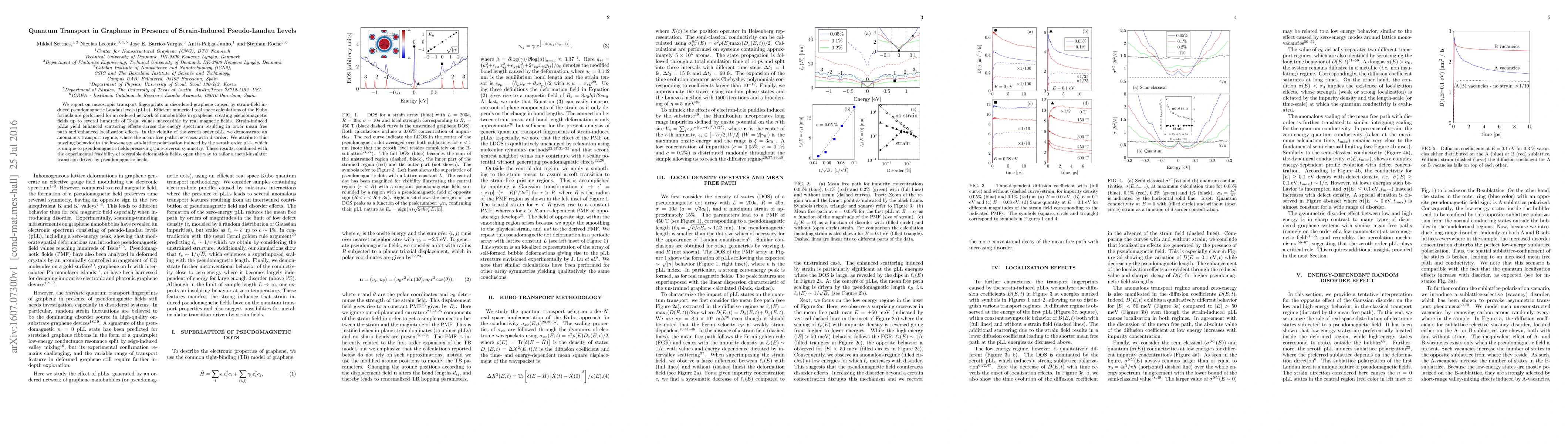 This paper investigates quantum transport in graphene under strain-induced pseudomagnetic fields, revealing enhanced scattering and localization effects due to pseudo-Landau levels. Notably, an anomalous transport regime near the zeroth order pseudo-Landau level exhibits increased mean free paths with disorder, attributed to sub-lattice polarization, potentially enabling a metal-insulator transition through reversible deformation fields.