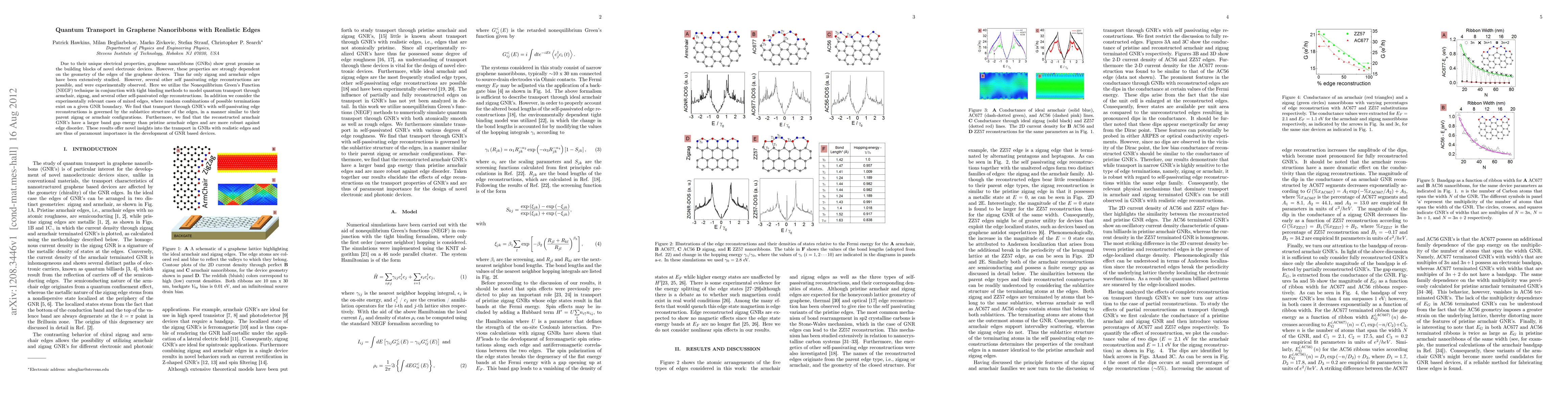 This study investigates quantum transport in graphene nanoribbons (GNRs) with various edge reconstructions using the Nonequilibrium Green's Function technique, revealing that self-passivating edge reconstructions significantly impact transport properties and robustness against disorder, with reconstructed armchair edges showing a larger band gap and enhanced stability.