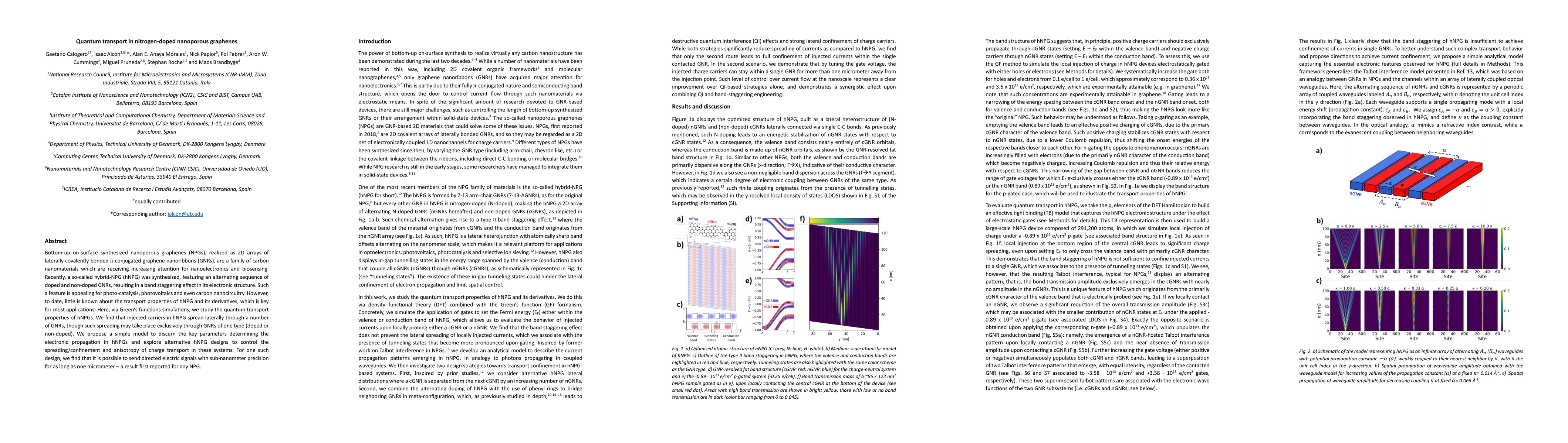 Bottom-up on-surface synthesized nanoporous graphenes (NPGs), realized as 2D arrays of laterally covalently bonded pi-conjugated graphene nanoribbons (GNRs), are a family of carbon nanomaterials which are receiving increasing attention for nanoelectronics and biosensing. Recently, a so-called hybrid-NPG (hNPG) was synthesized, featuring an alternating sequence of doped and non-doped GNRs, resulting in a band staggering effect in its electronic structure. Such a feature is appealing for photo-catalysis, photovoltaics and even carbon nanocircuitry. However, to date, little is known about the transport properties of hNPG and its derivatives, which is key for most applications. Here, via Green's functions simulations, we study the quantum transport properties of hNPGs. We find that injected carriers in hNPG spread laterally through a number of GNRs, though such spreading may take place exclusively through GNRs of one type (doped or non-doped). We propose a simple model to discern the key parameters determining the electronic propagation in hNPGs and explore alternative hNPG designs to control the spreading/confinement and anisotropy of charge transport in these systems. For one such design, we find that it is possible to send directed electric signals with sub-nanometer precision for as long as one micrometer - a result first reported for any NPG.