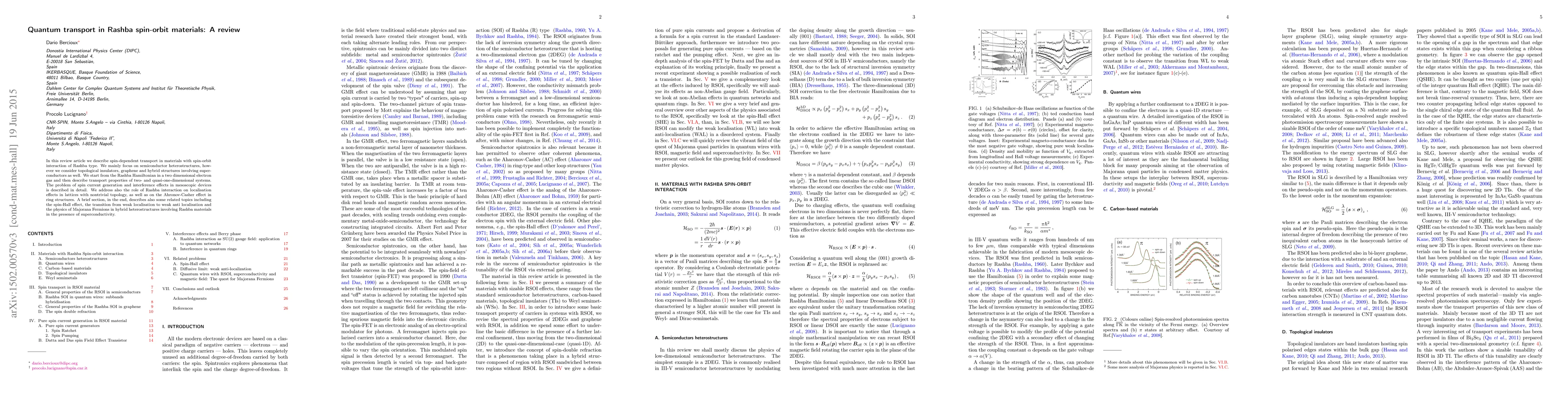 This review article explores spin-dependent transport in materials with Rashba spin-orbit interaction, focusing on semiconductor heterostructures, topological insulators, graphene, and superconducting hybrid structures. It delves into spin current generation, interference effects, localization, and the Aharonov-Casher effect, concluding with related topics like the spin-Hall effect and Majorana fermions.