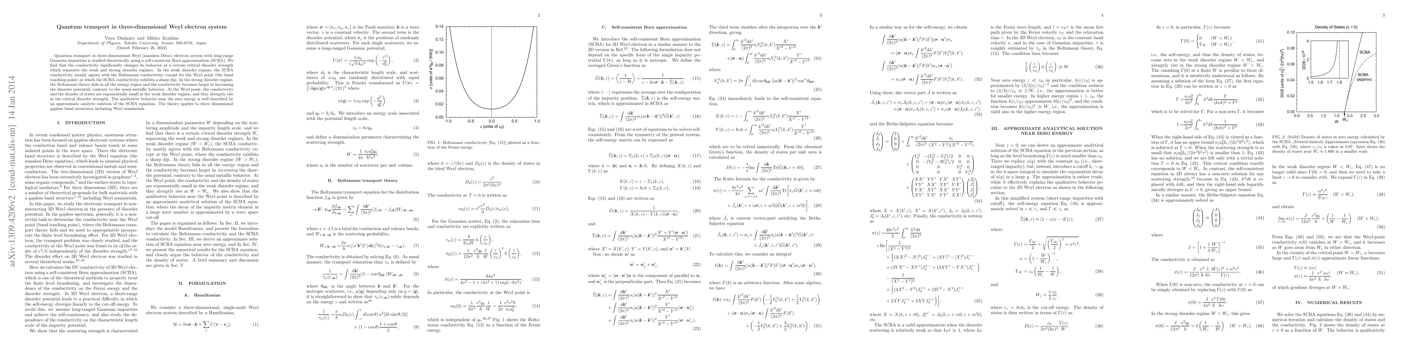 Researchers studied quantum transport in a 3D Weyl electron system with long-range Gaussian impurities, finding that conductivity changes significantly at a certain scattering strength, separating weak and strong disorder regimes.