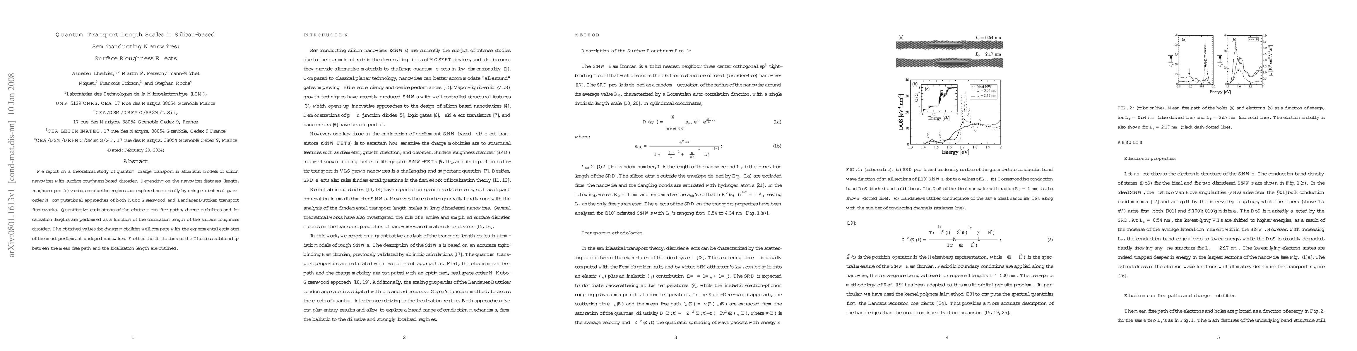 This paper theoretically investigates quantum charge transport in silicon nanowires with surface roughness, employing numerical methods to explore various conduction regimes. It quantifies elastic mean free paths, charge mobilities, and localization lengths, comparing results with experimental data and discussing the limitations of the Thouless relationship.
