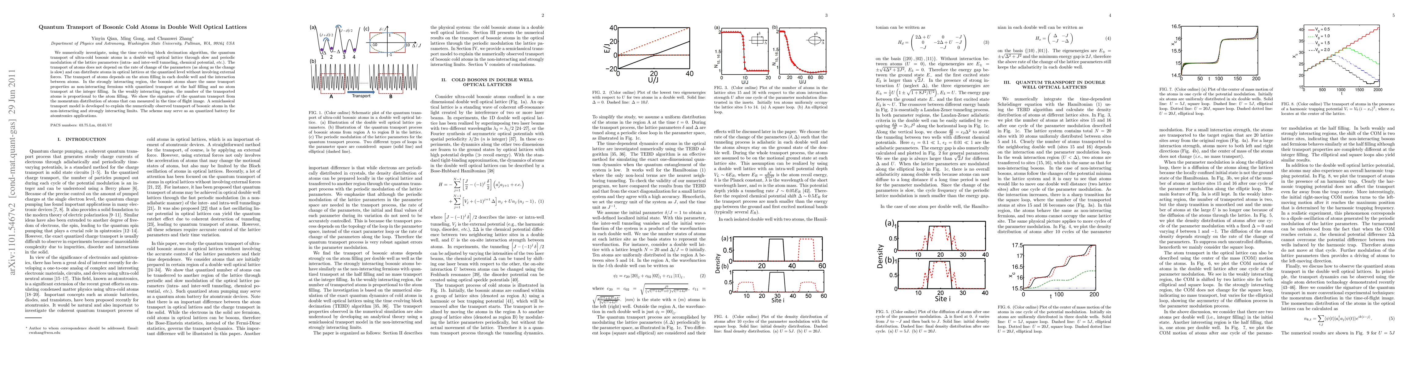 This paper investigates the quantum transport of ultra-cold bosonic atoms in double well optical lattices using numerical simulations, revealing quantized atom transport without external forces. The transport behavior depends on atom filling and interactions, with signatures observable in momentum distributions.
