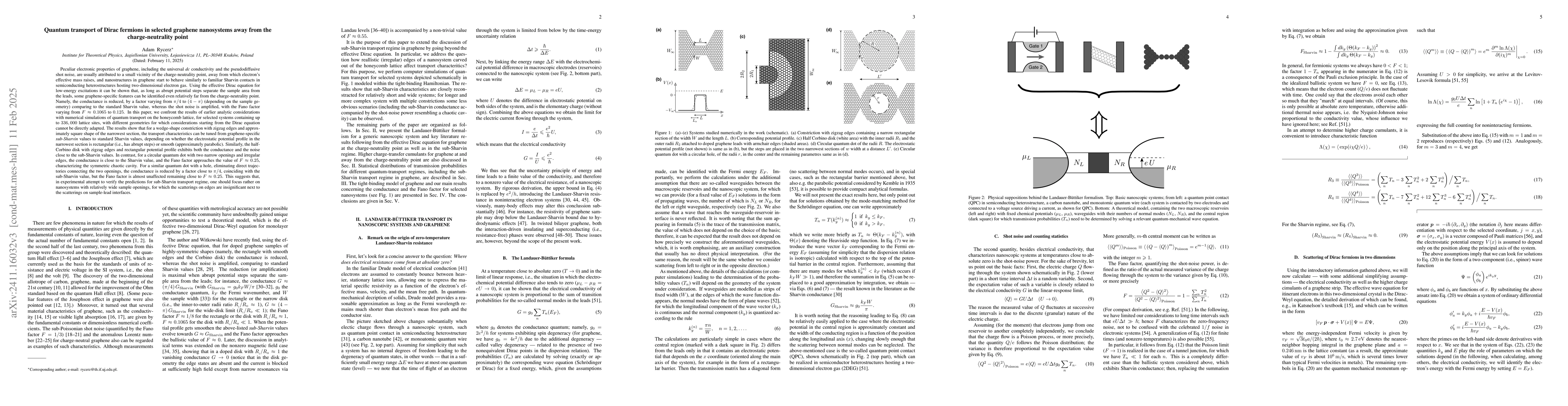 Peculiar electronic properties of graphene, including the universal dc conductivity and the pseudodiffusive shot noise, are usually attributed to a small vicinity of the charge-neutrality point, away from which electron's effective mass raises, and nanostructures in graphene start to behave similarly to familiar Sharvin contacts in semiconducting heterostructures hosting two-dimensional electron gas. Using the effective Dirac equation for low-energy excitations it can be shown that, as long as abrupt potential steps separate the sample area from the leads, graphene-specific features can be identified even relatively far from the charge-neutrality point. Namely, the conductance is reduced, comparing to the standard Sharvin value, whereas the shot noise is amplified. Here, we confront the results of earlier analytic considerations with numerical simulations of quantum transport on the honeycomb lattice, for selected systems for which considerations starting from the Dirac equation cannot be directly adapted. For a wedge-shape constriction with zigzag edges and approximately square shape of the narrowest section, the transport characteristics can be tuned from graphene-specific sub-Sharvin values to standard Sharvin values, depending on whether the electrostatic potential profile in the narrowest section is rectangular or smooth. The half-Corbino disk with rectangular potential profile exhibits both the conductance and the noise close to the sub-Sharvin values. For a circular quantum dot with two narrow openings and irregular edges, the conductance is close to the Sharvin value, and the Fano factor approaches the value of $F=1/4$. This suggests that, in experimental attempt to verify the predictions for sub-Sharvin transport regime, one should focus rather on nanosystems, for which the scatterings on edges are insignificant next to the scatterings on sample-lead interfaces.