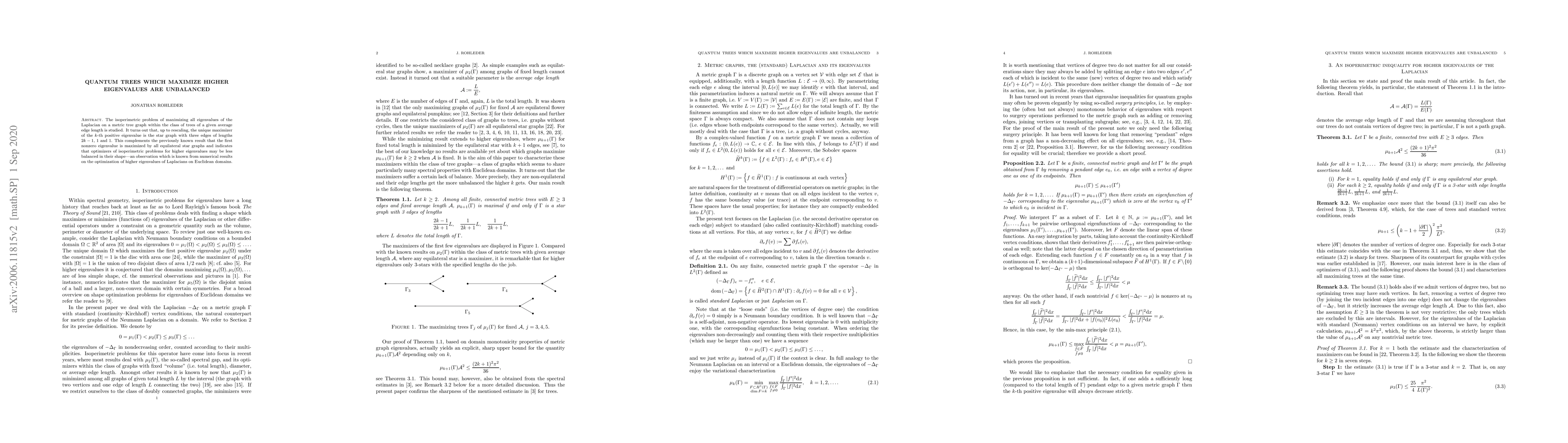 The research paper finds that the optimal shape for maximizing higher eigenvalues of a Laplacian on a tree graph is an unbalanced star graph with specific edge lengths, contradicting previous findings that equilateral star graphs maximize the first non-zero eigenvalue.