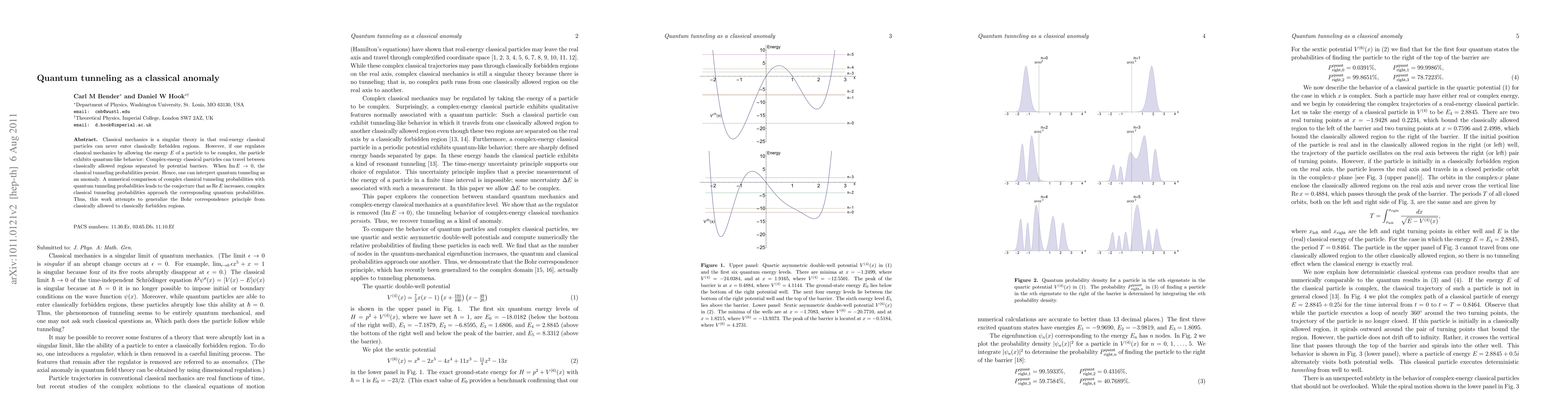 Classical mechanics is a singular theory in that real-energy classical particles can never enter classically forbidden regions. However, if one regulates classical mechanics by allowing the energy E of a particle to be complex, the particle exhibits quantum-like behavior: Complex-energy classical particles can travel between classically allowed regions separated by potential barriers. When Im(E) -> 0, the classical tunneling probabilities persist. Hence, one can interpret quantum tunneling as an anomaly. A numerical comparison of complex classical tunneling probabilities with quantum tunneling probabilities leads to the conjecture that as ReE increases, complex classical tunneling probabilities approach the corresponding quantum probabilities. Thus, this work attempts to generalize the Bohr correspondence principle from classically allowed to classically forbidden regions.